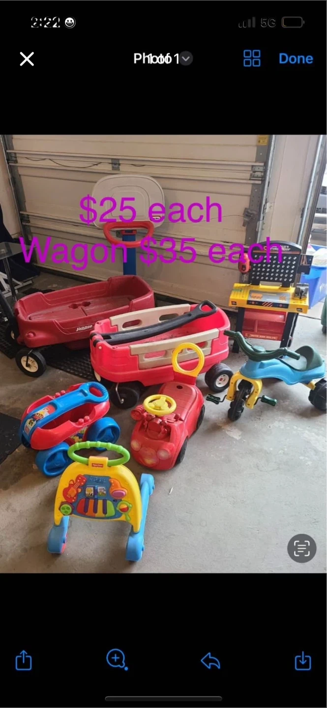 Selling a variety of kids toys! - Radio Flyer wagon - Baby walker - Tricycle The toys are $25 each and the wagons are $35 each If interested please contact (416) 804-5488