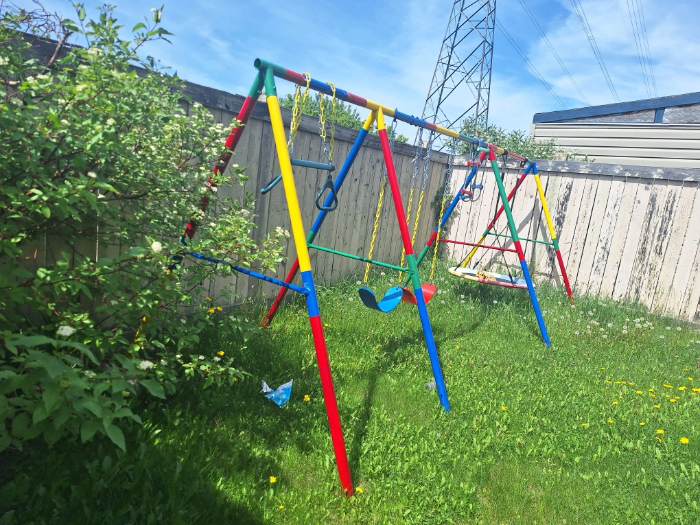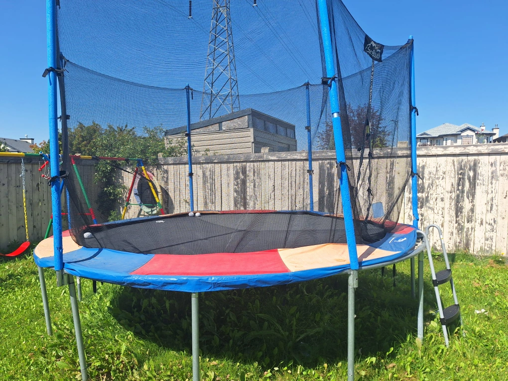 Selling a trampoline and swing set for kids. individually 150$ both for 200$ It's in good condition and ready for a new home! Perfect for outdoor fun and exercise for the little ones. It has a safety net around the trampoline.