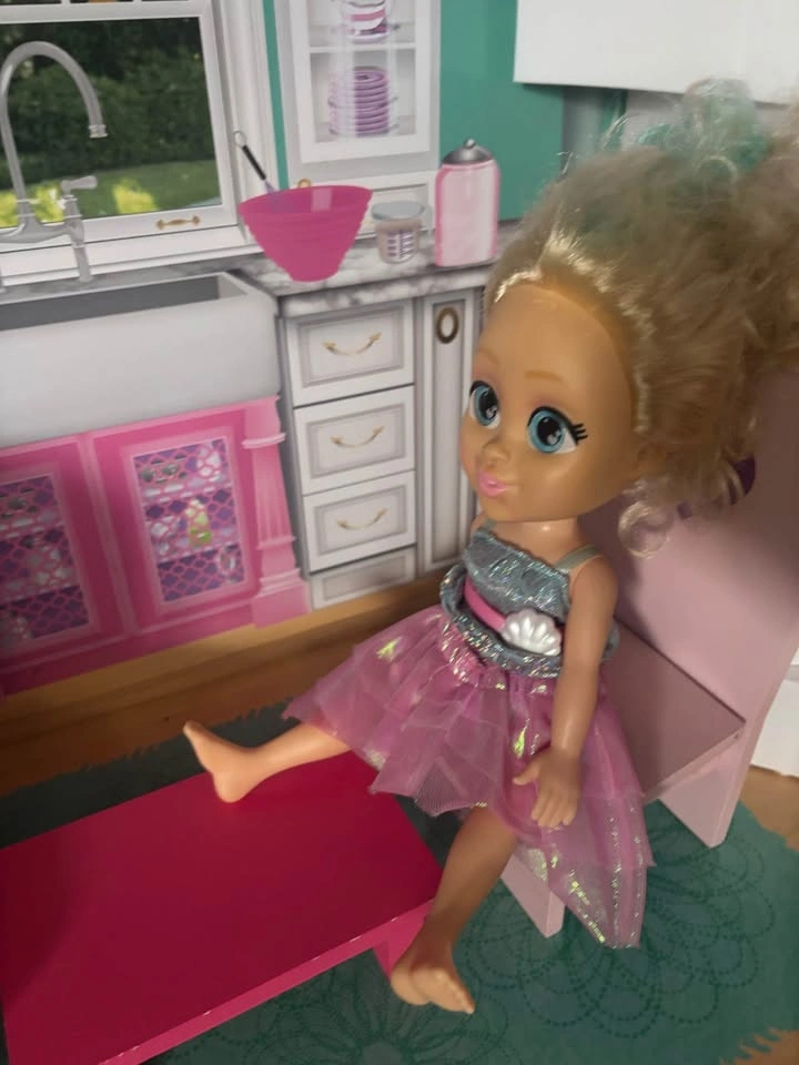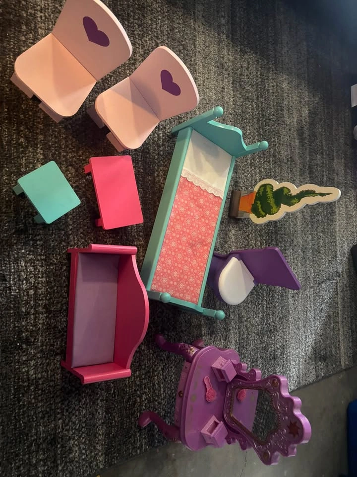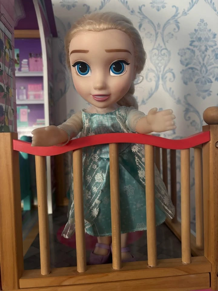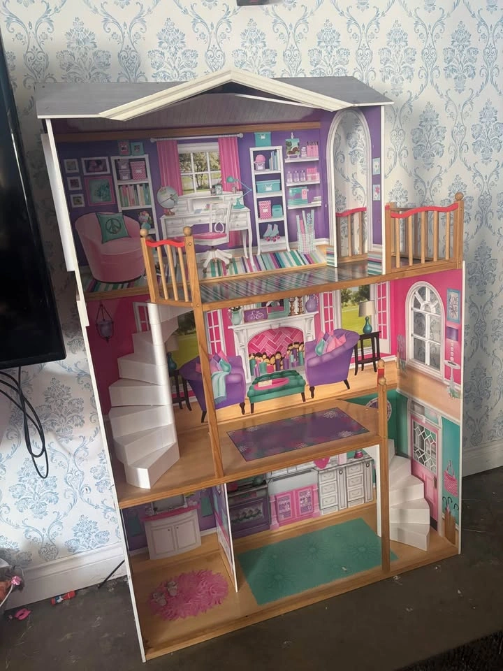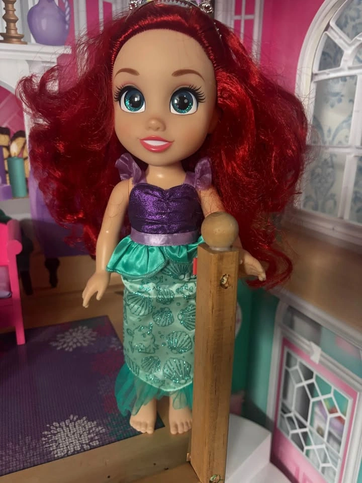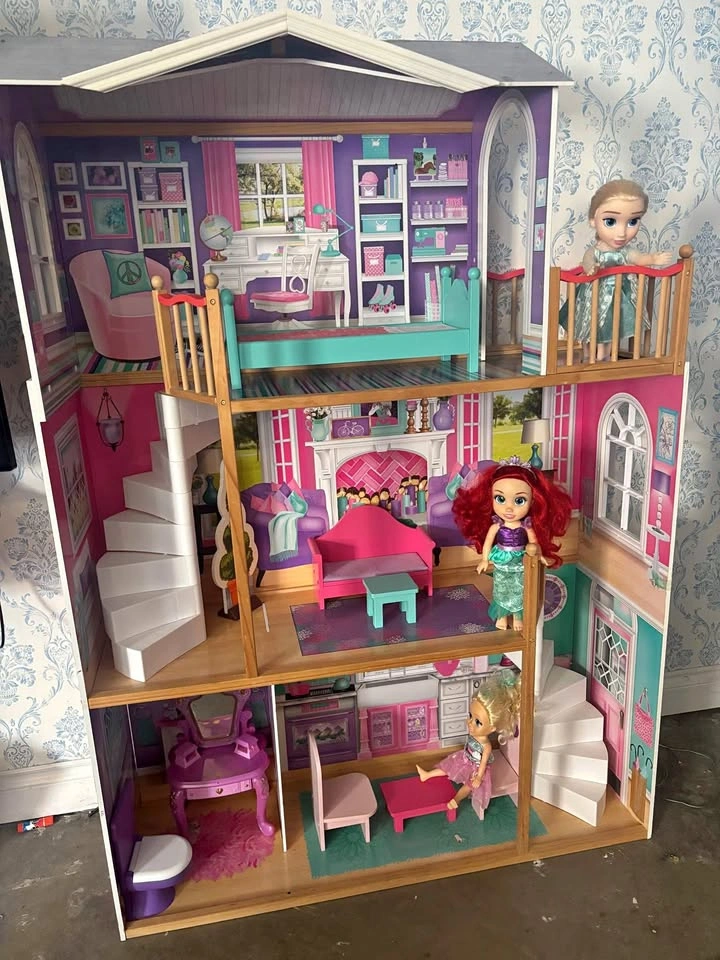 Stands 66” tall, 46” wide 3 dolls included (Elsa, Ariel, Diana) Furniture included