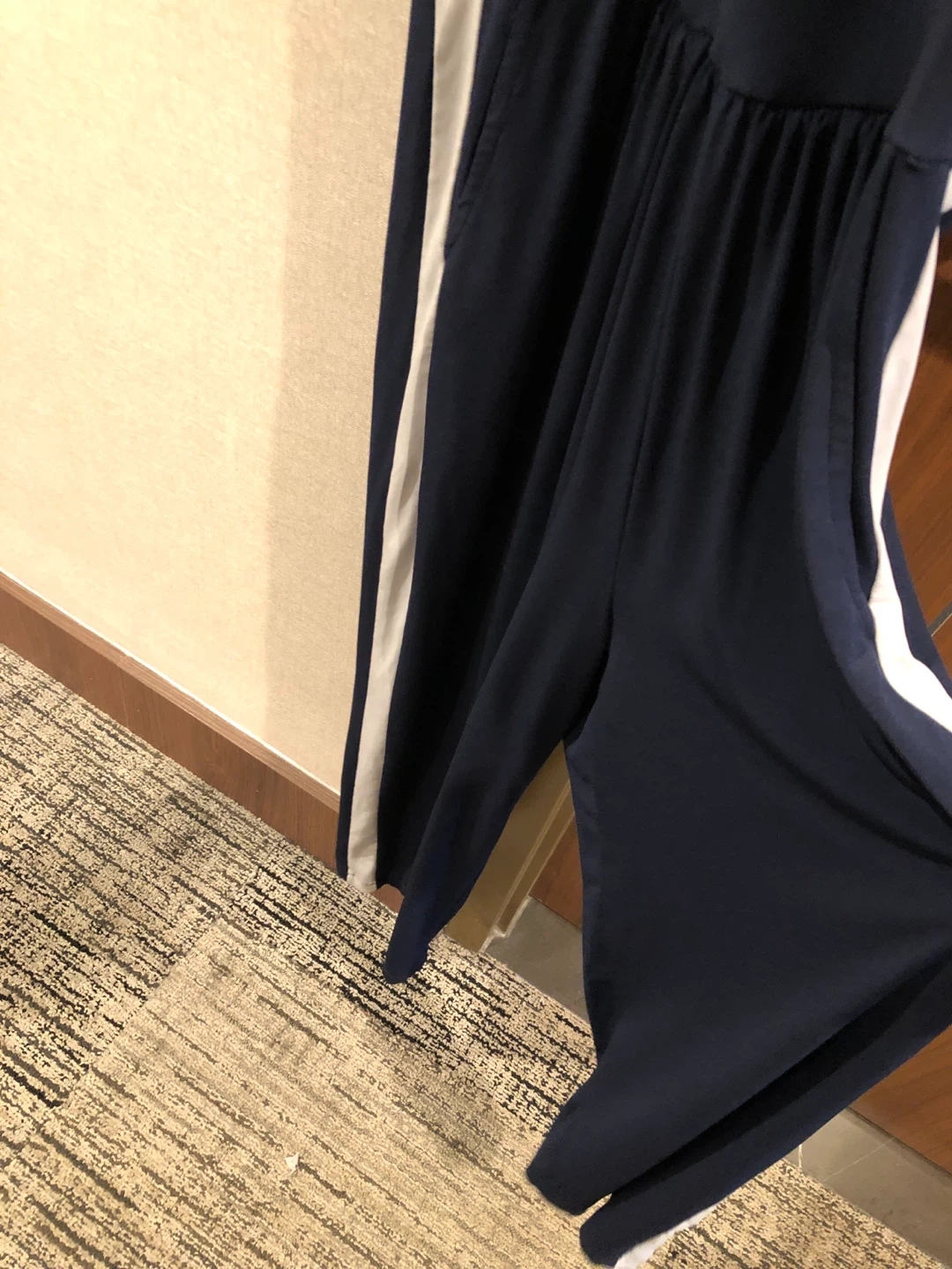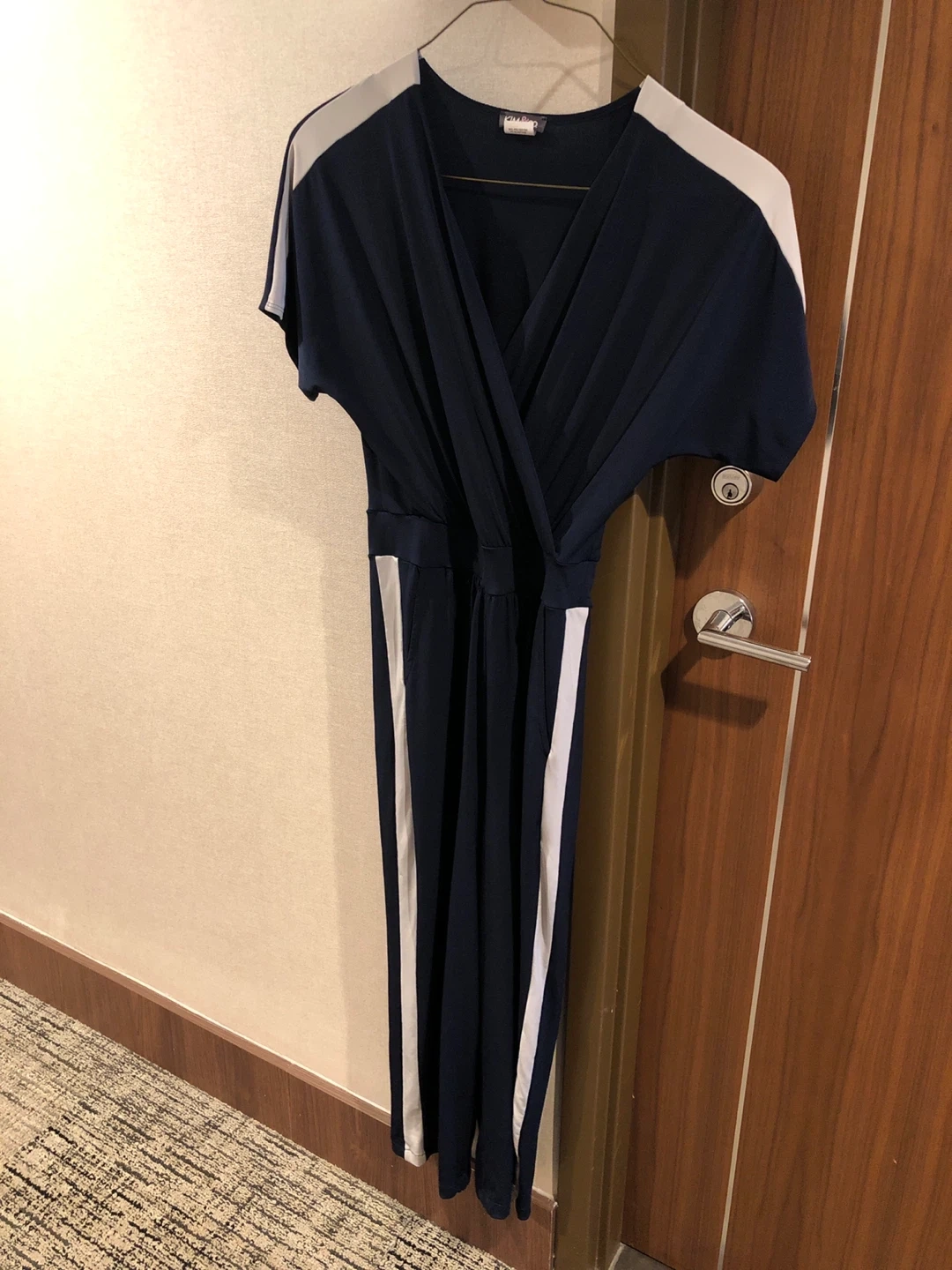 Selling a Kim & Co jumpsuit in size M! It's a lovely navy colour with white stripes down the sides. Made in Canada Downtown pick up Cash only