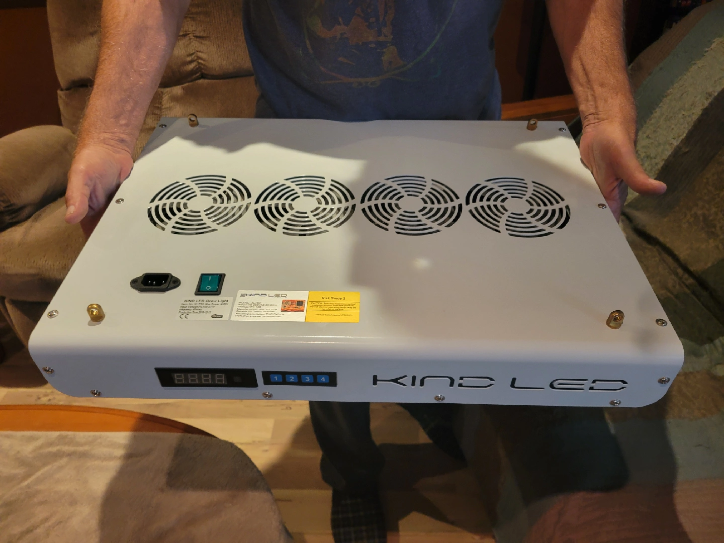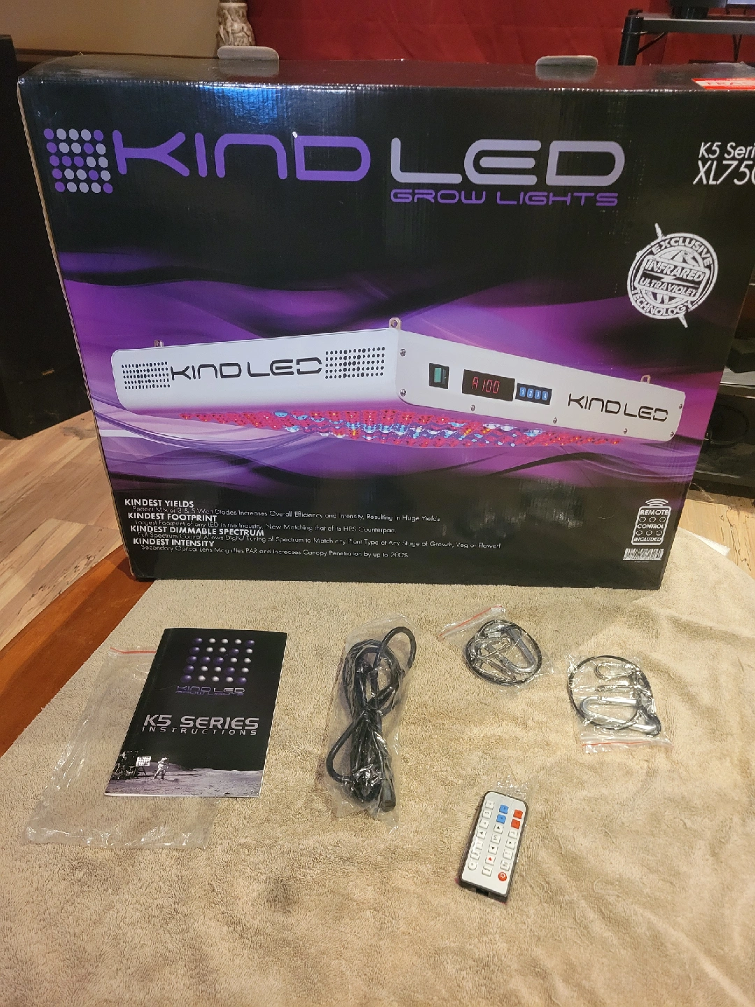 Selling a Kind LED K5 Series XL750 Grow Light. It's in great condition and comes with the box and all included components, such as the power cable and remote control. This grow light is designed to maximize yields with its Kindest Footprint and Kindest Dimmable Spectrum. Perfect for any grower looking to enhance their plant growth!