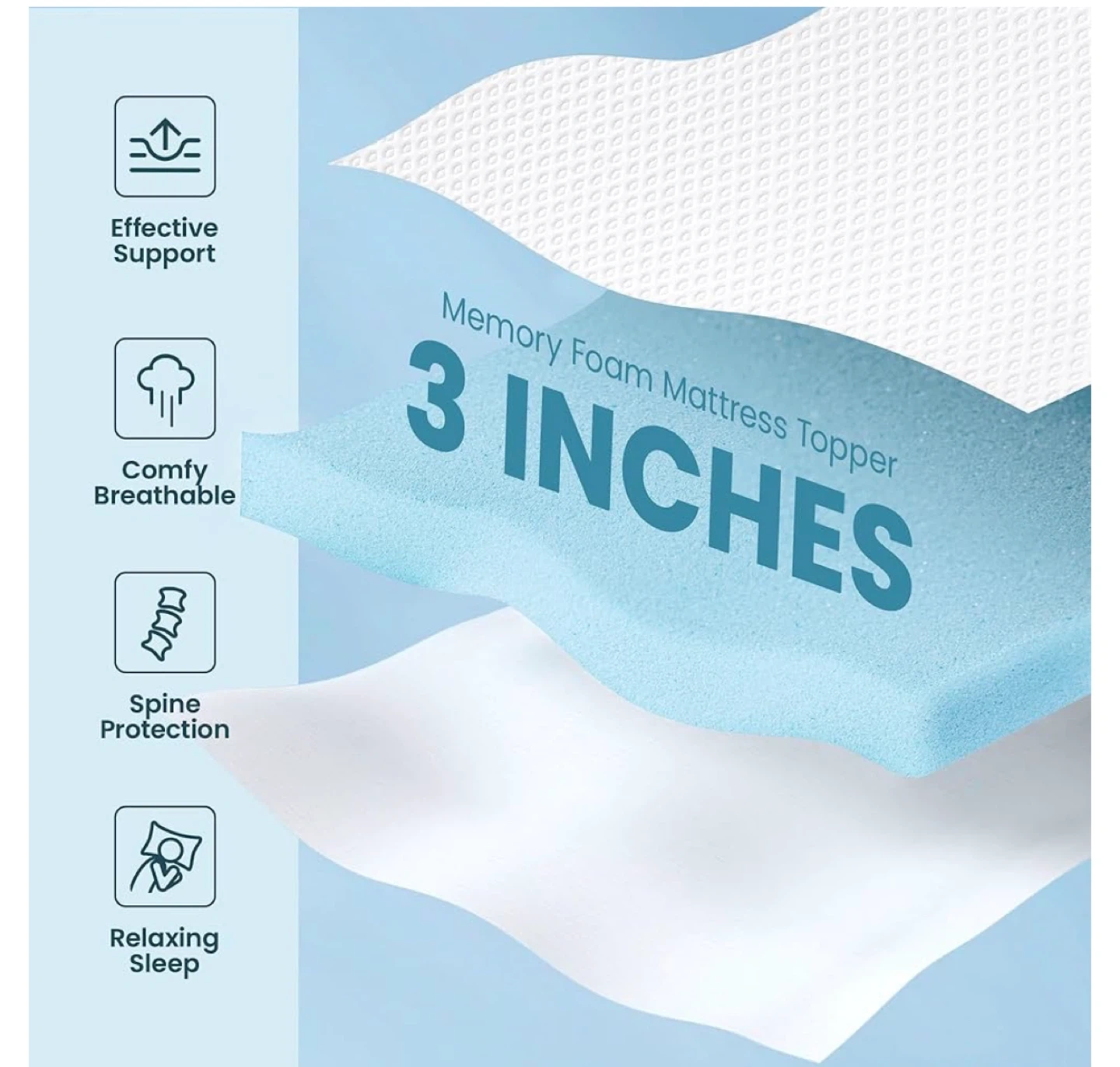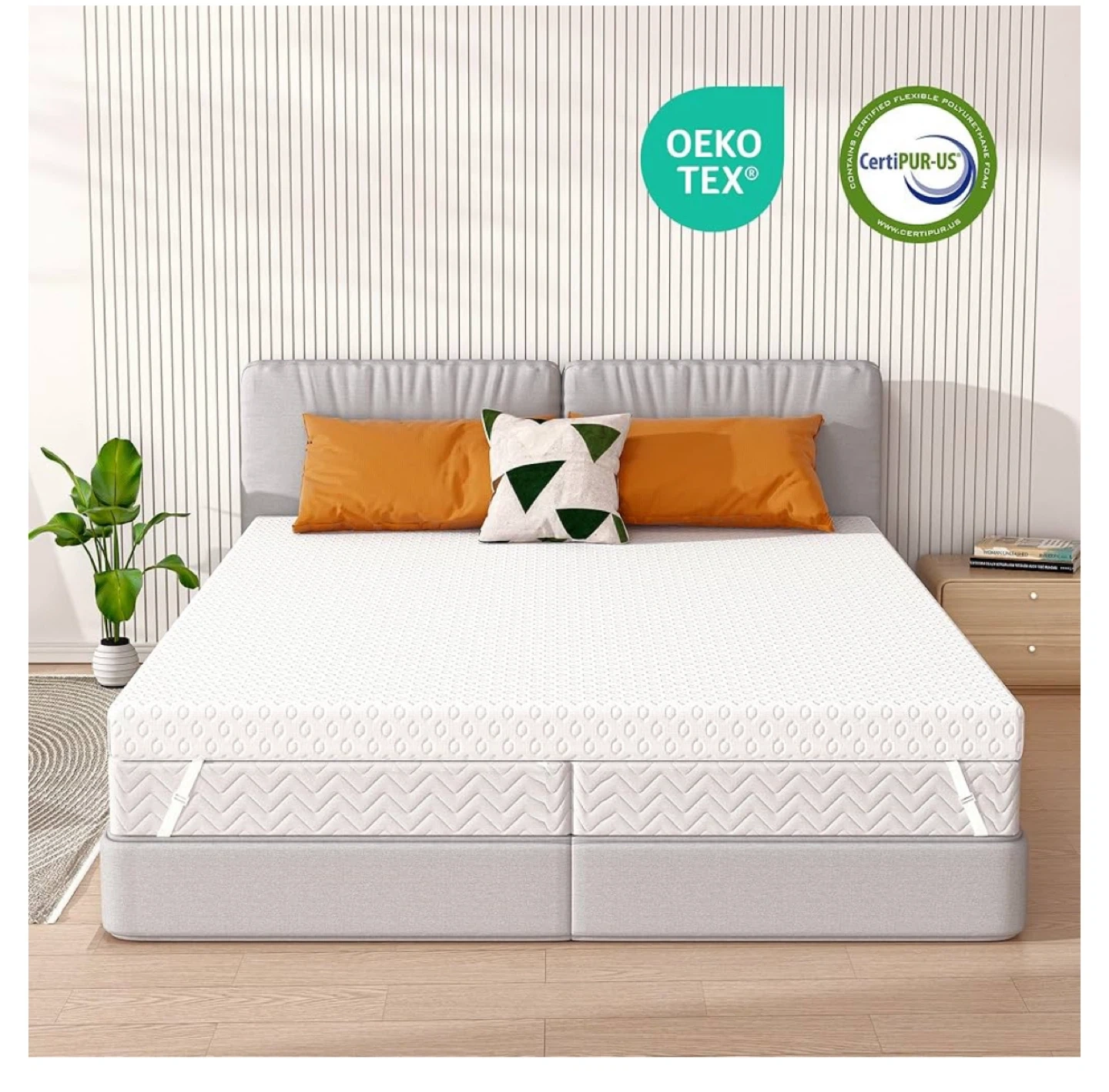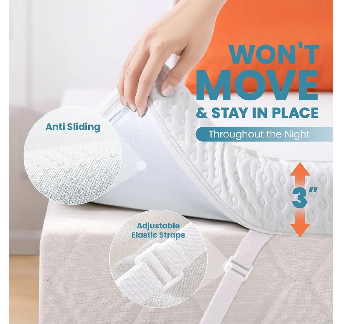 NEW IN BOX King 3” White ⭐️【Quality Gel Memory Foam】 High-density memory foam and gel-filled particles while providing full comfort and effective support. Absorb and disperse heat to improve the Sleeping Quality. Keep the spine in a neutral position to improve sleep quality, releasing muscle pressure and reducing fatigue. ⭐️【Breathable & Removable Cover】Bamboo fiber makes the mattress topper cover more skin-friendly and breathable, not stuffy. The cover is removable and machine washable. The U-shaped zipper allows to easily remove the cover to keep it clean, promoting its longevity. ⭐️【Double non-slip design】 Non-slip surface on the bottom of the mattress topper increases friction and prevents movement. Four adjustable elastic straps hold the topper more securely to the mattress. The double non-slip design provides double the stability, ensuring that the mattress topper won't shift when you wake up ⭐️【Introduction of Use】 The Mattress Topper is packed vacuum for easy transportation. Before first use, it is recommended to allow 24-48 hours for the new foam smell to dissipate and fully expand to original size. Please do not leave the foam in the sun.