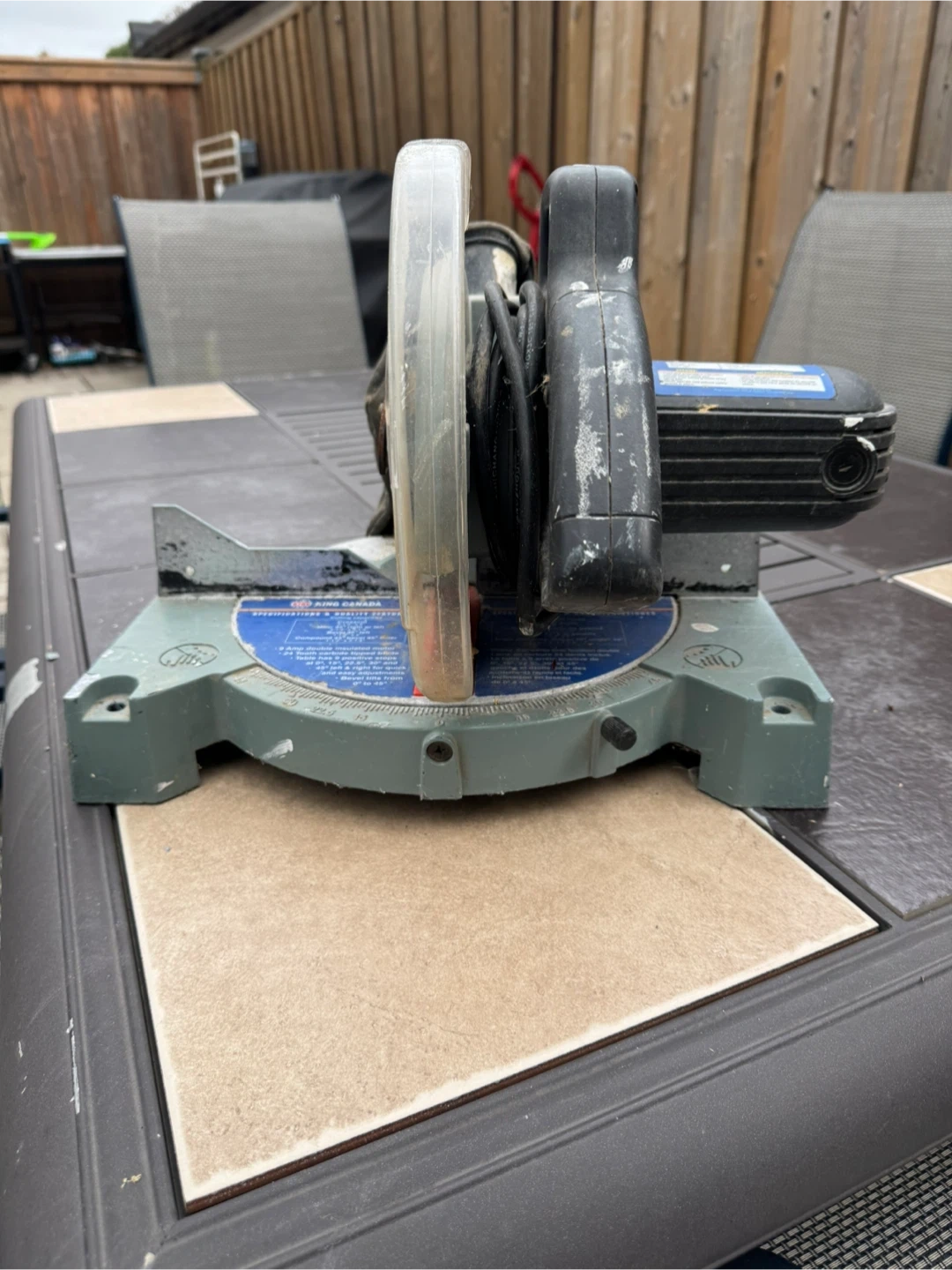 Selling a King Canada miter saw. It shows some signs of use, but it's still functional and ready for your projects! Great for cutting wood and other materials at precise angles