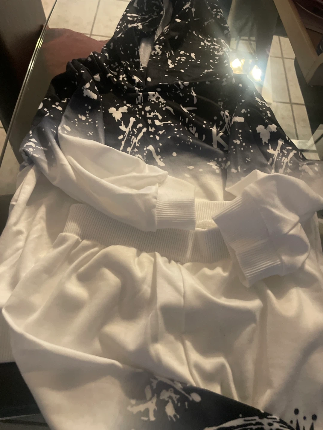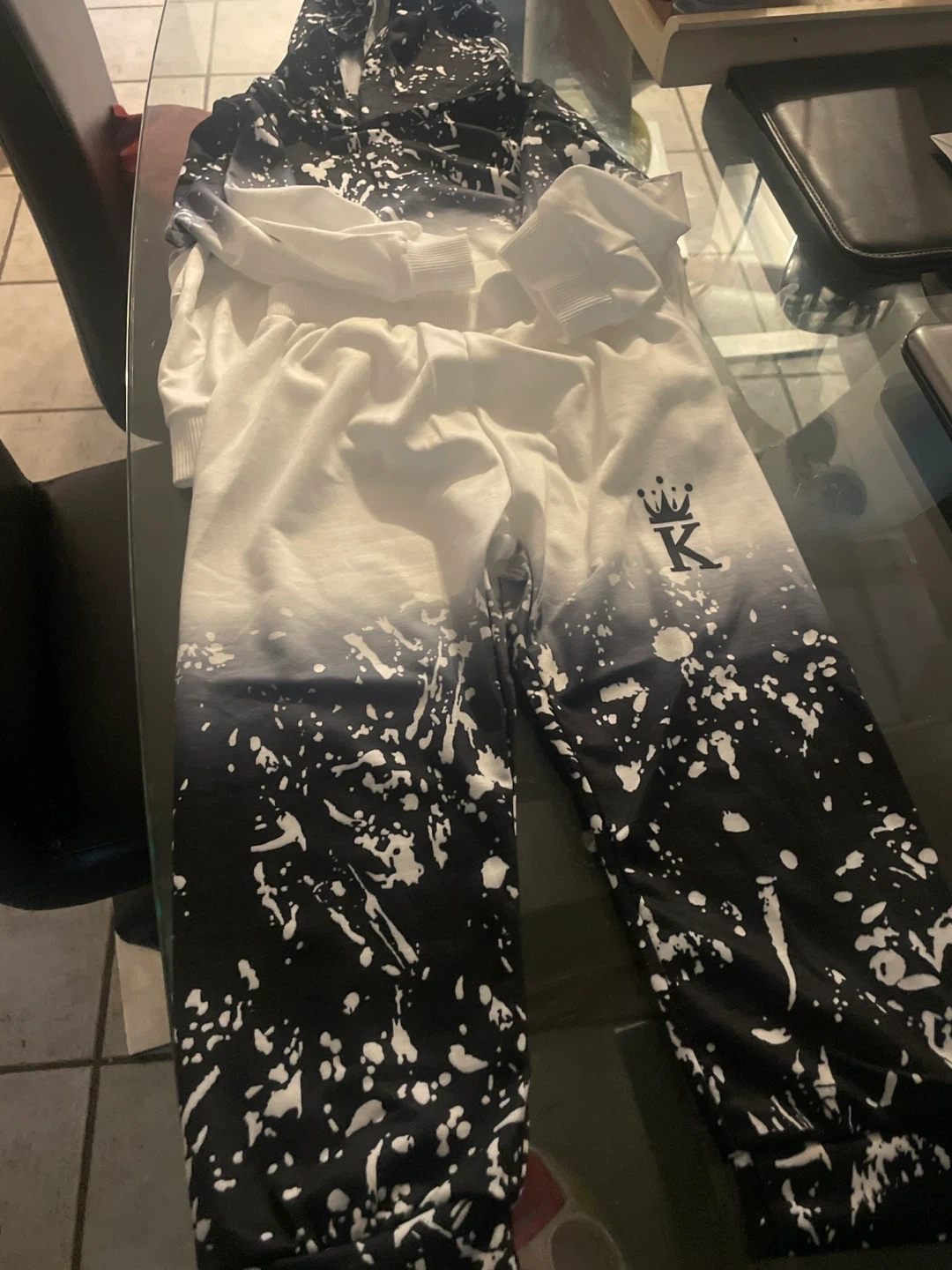 Selling a King Mcgregor tracksuit in black and white. The tracksuit features a unique splatter design. Perfect for casual wear or lounging around the house