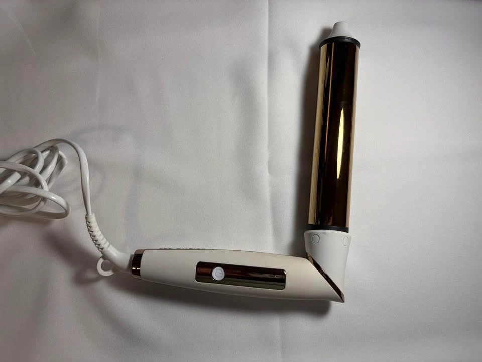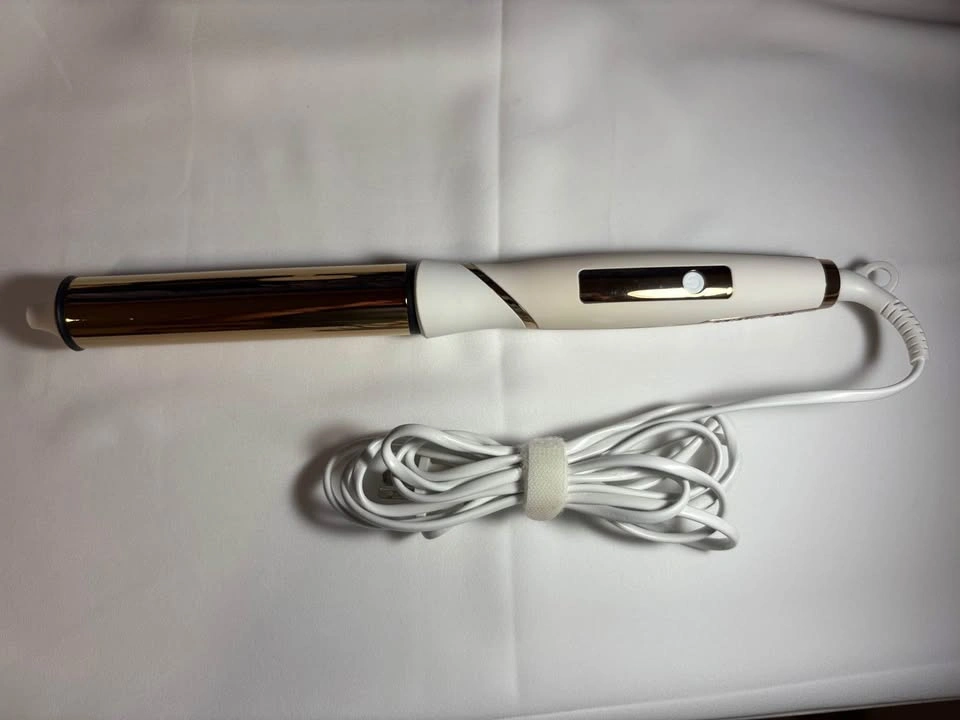 Sleek curling iron in white and gold. Perfect for styling curls. Features: 1 1/4” barrel is perfect for creating easy, everyday waves or soft, bouncy curls Innovative handle rotates from 180 to 90, for easier styling and less stress on your arms. Titanium barrel transfers heat to deliver negative ions that enhance shine and eliminate frizz. Digital display + 4 temperature pre-sets (up to 425F) allow you to customize the temperature to your hair type and texture Automatic shut-off after 30 mins, dual voltage and 9ft. swivel cord $60/OBO If the listing is still up, it’s still available 😊