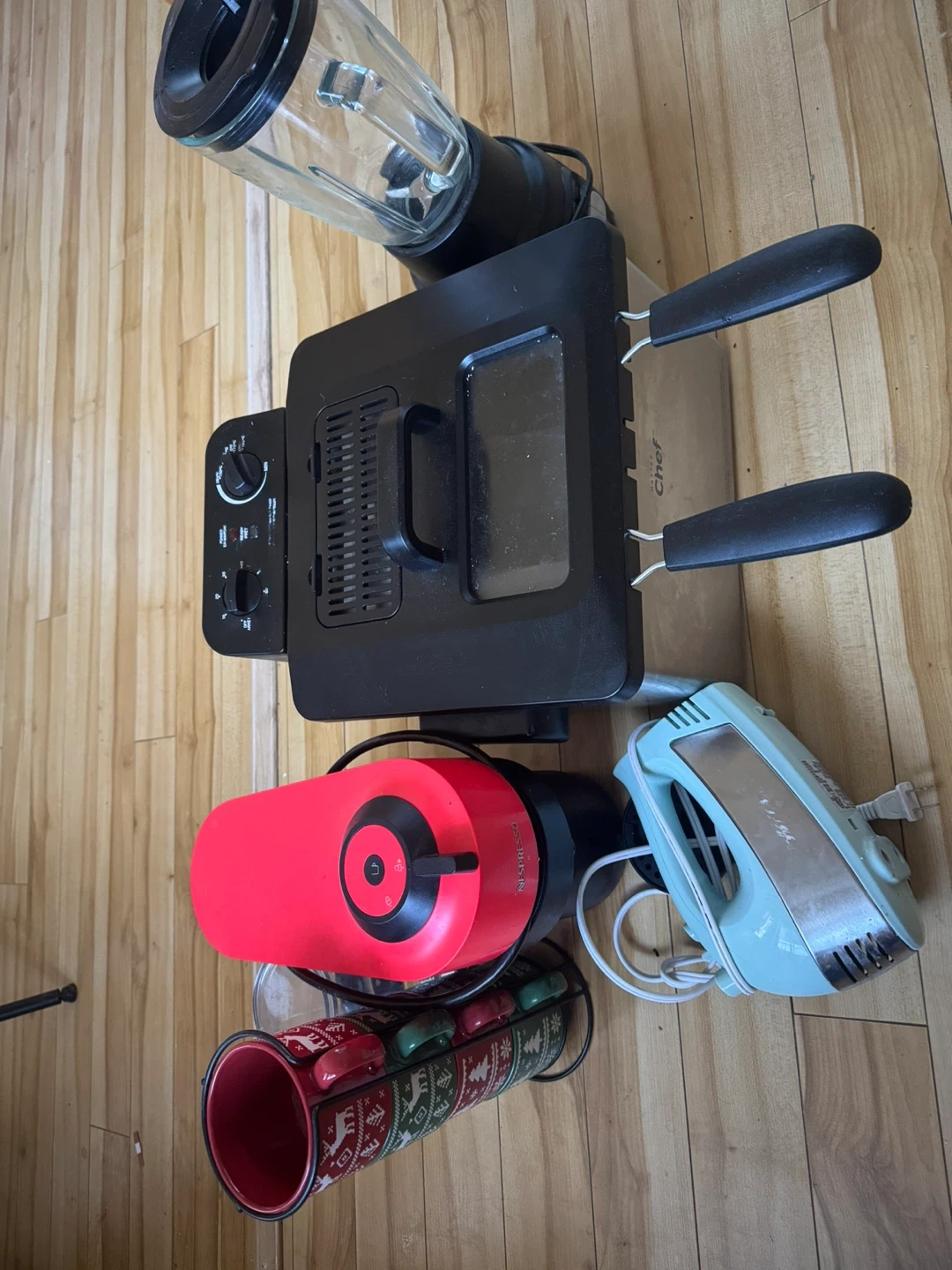 Everything for 100 Or coffe machine for 50 (glasses for free) Deep fryer-50 Blender -10