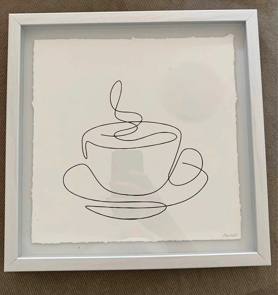 Kitchen artwork in a shadow box frame. Pretty much brand new, no scratches or dents. Frame is off white with a touch of grey.