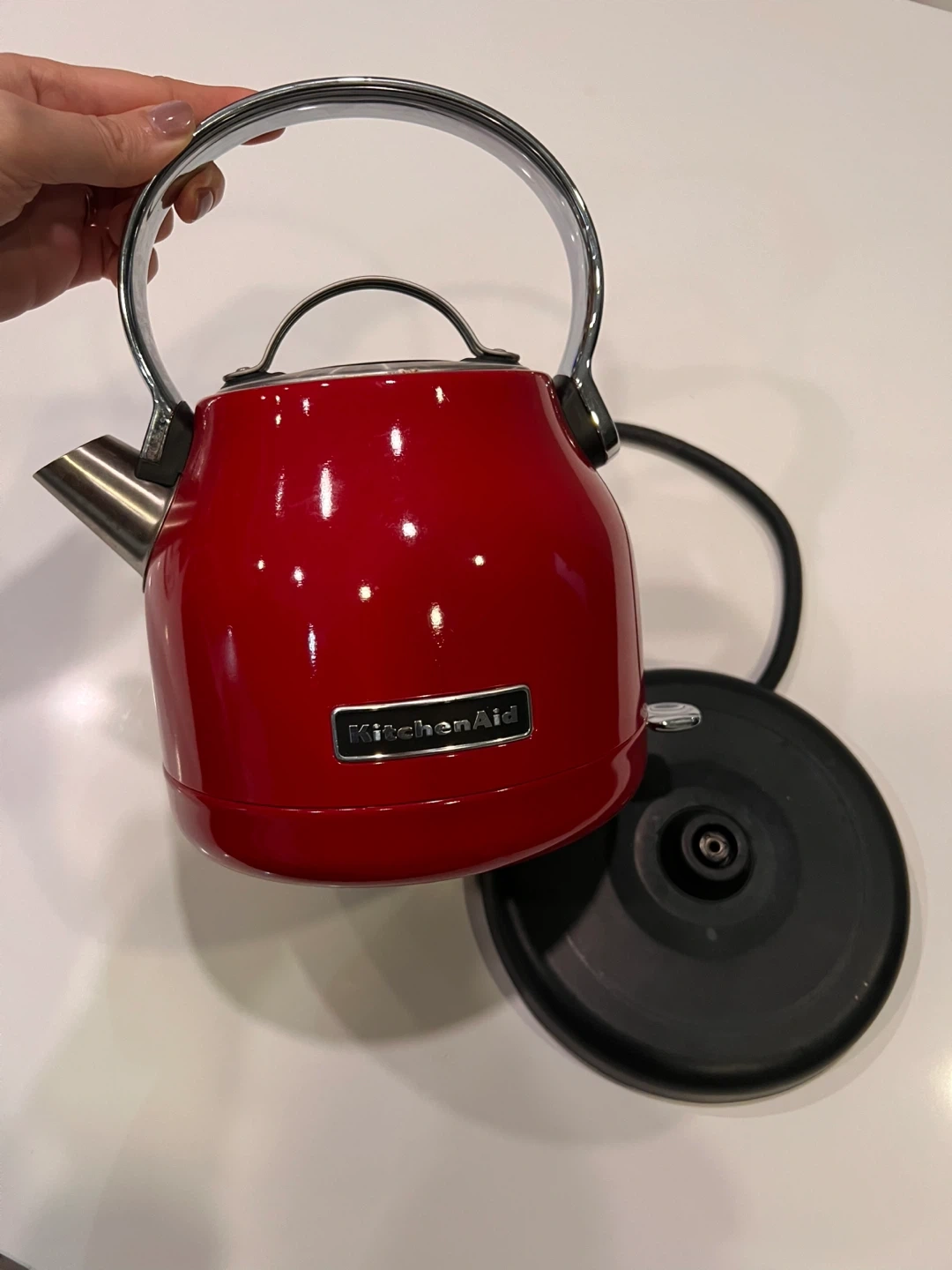Selling a KitchenAid electric kettle in red! It's in great condition and ready to heat up your water for tea or coffee. A stylish addition to any kitchen!