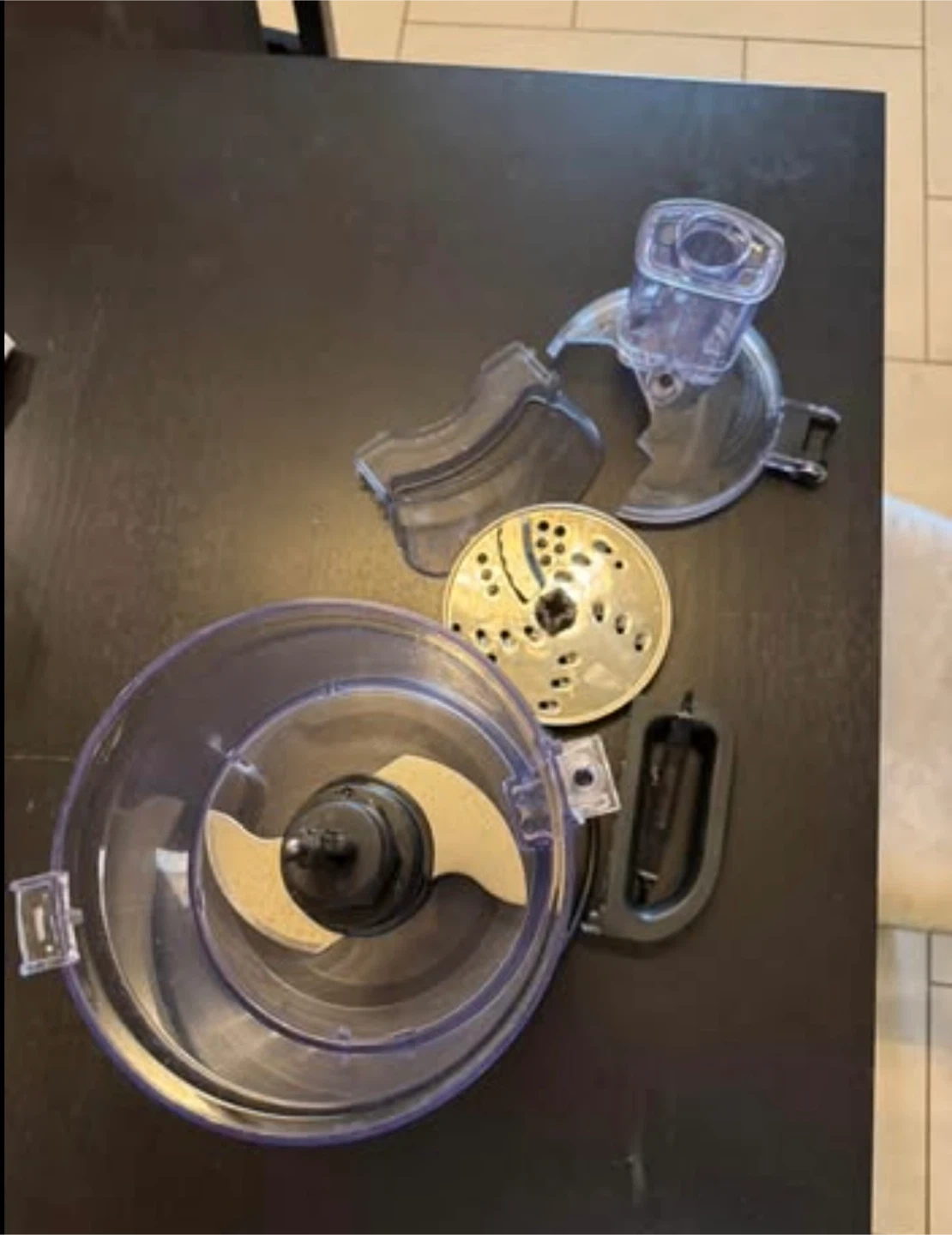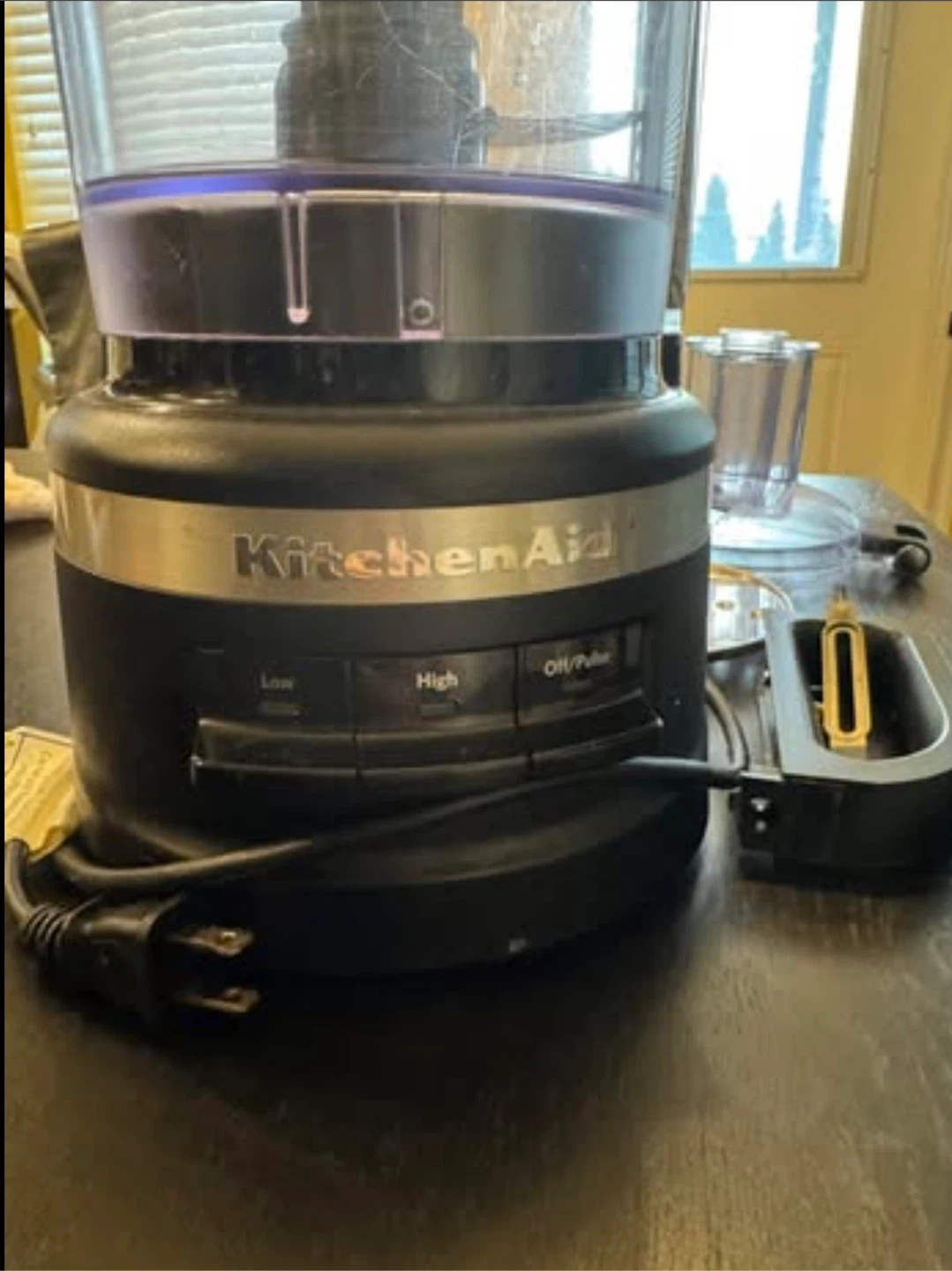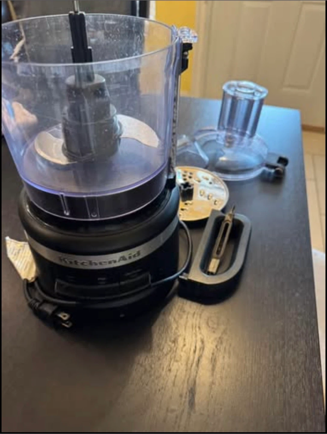 Selling a KitchenAid food processor. Please note that it is damaged (cracked plastic on the lid). Includes the blade and other attachments as pictured. Great for someone who needs parts or can repair it!
