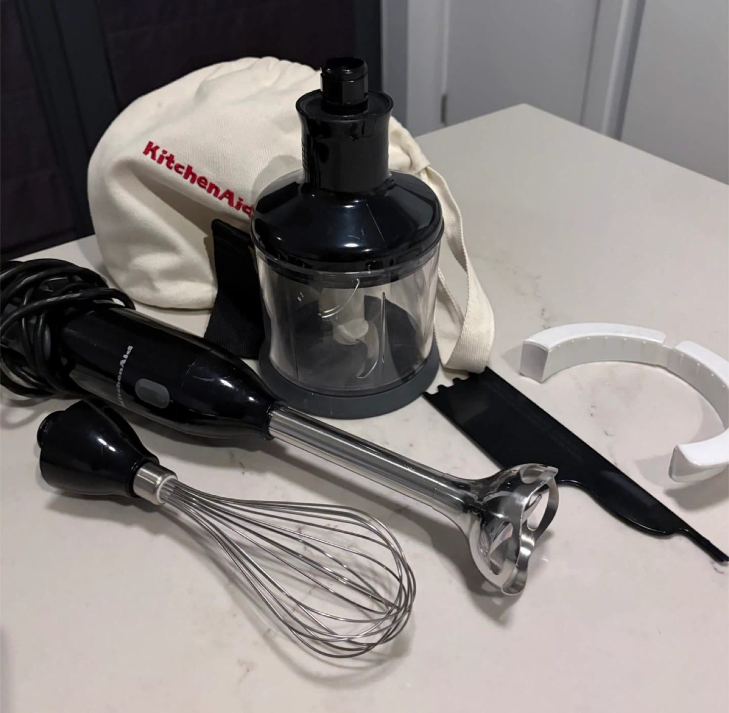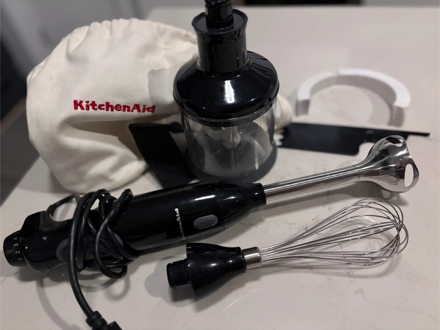KitchenAid Immersion Blender Set The immersion blender has been used but the other attachments are new / never used Black with stainless steel
