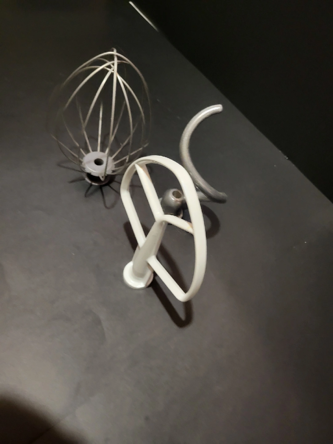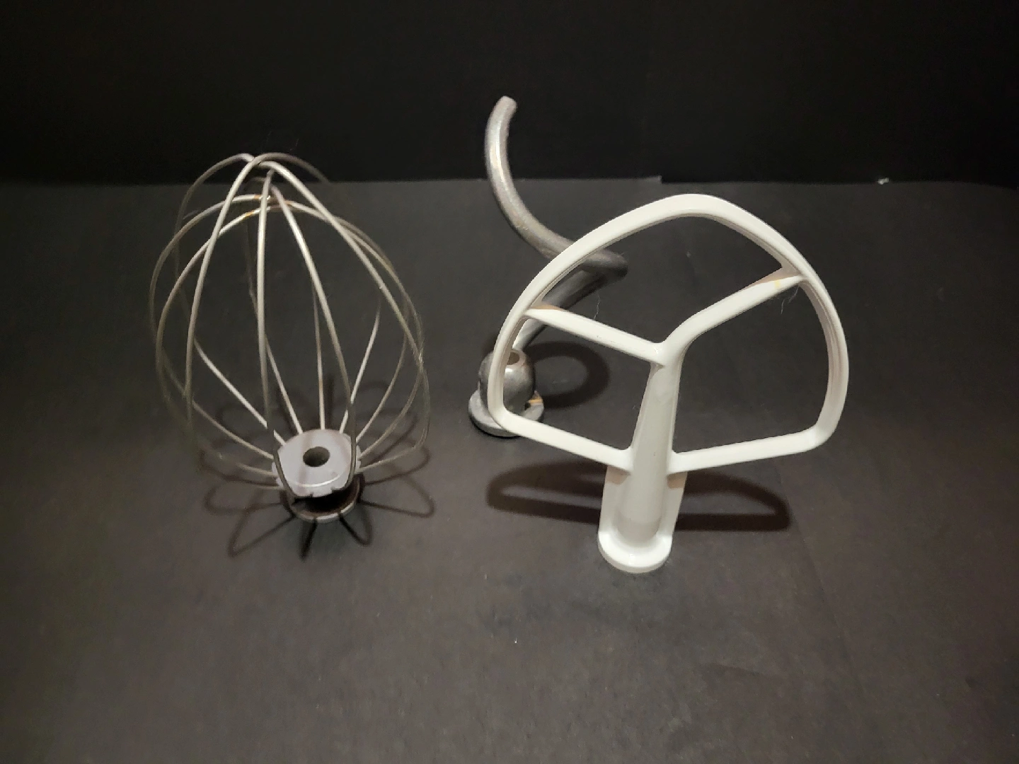 Selling a set of KitchenAid mixer attachments. Includes the whisk, dough hook, and flat beater. Great for all your baking needs!