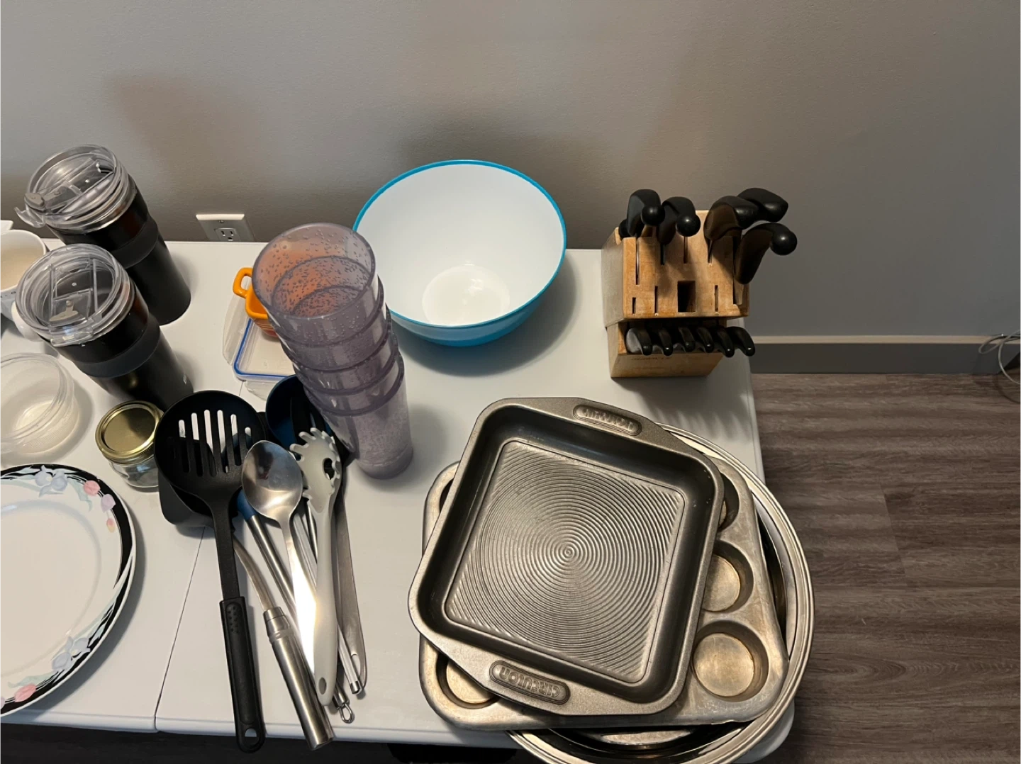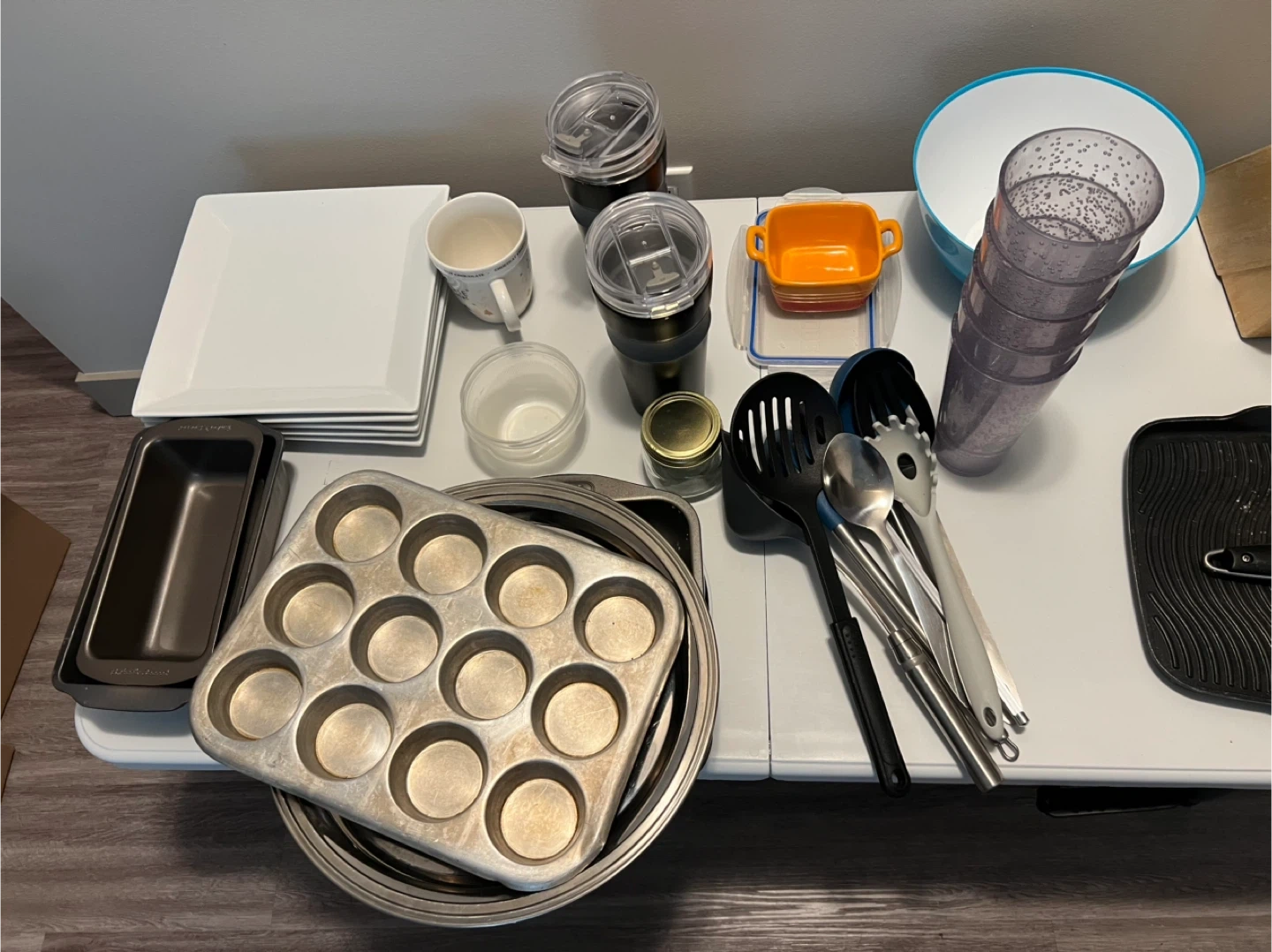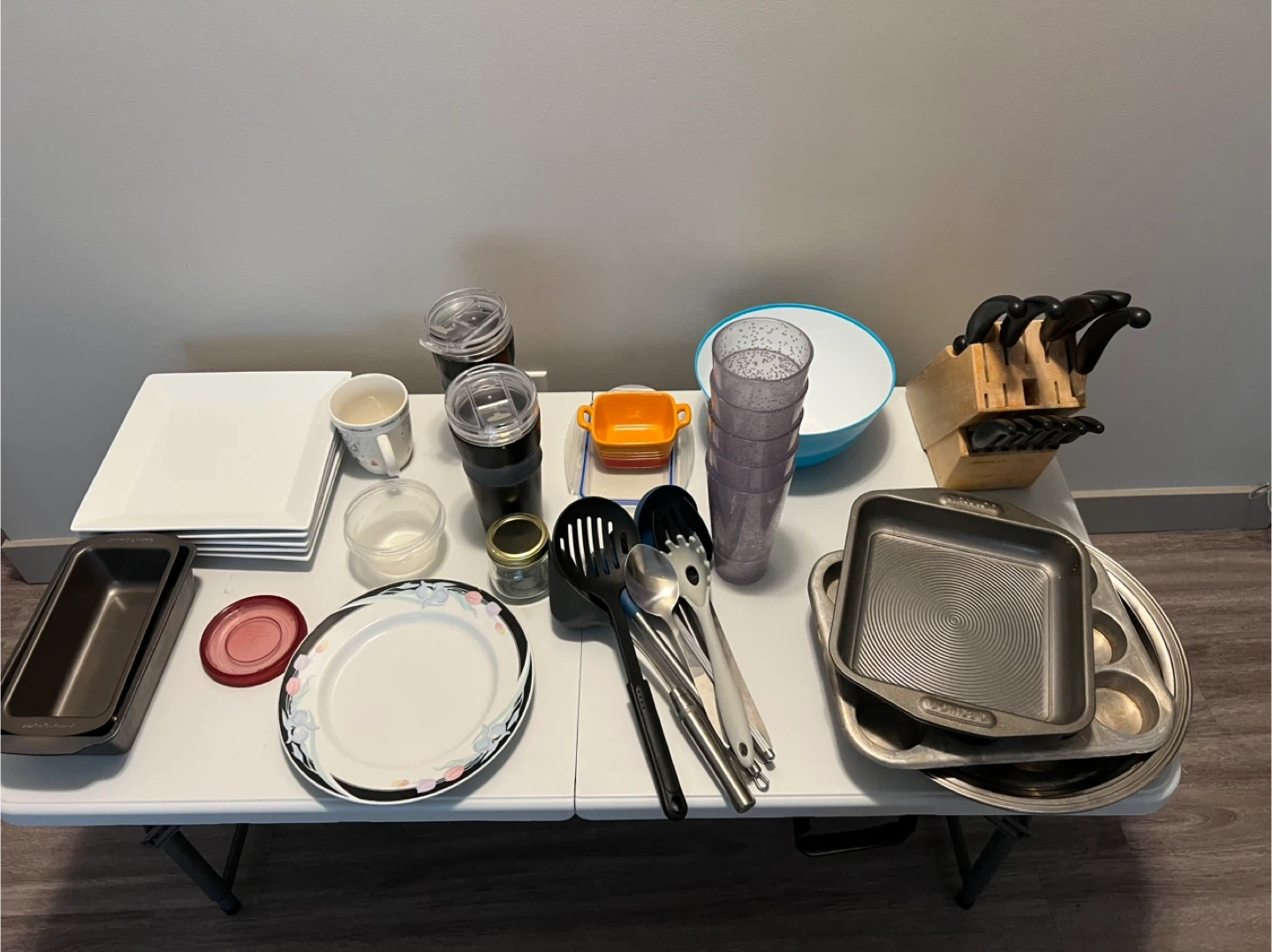 Selling a variety of kitchenware items! Includes plates, cups, bowls, utensils, and baking pans. All in good condition and ready for a new home