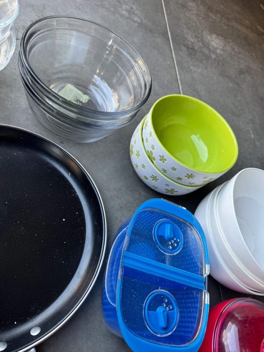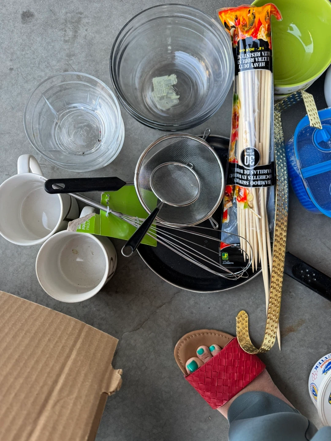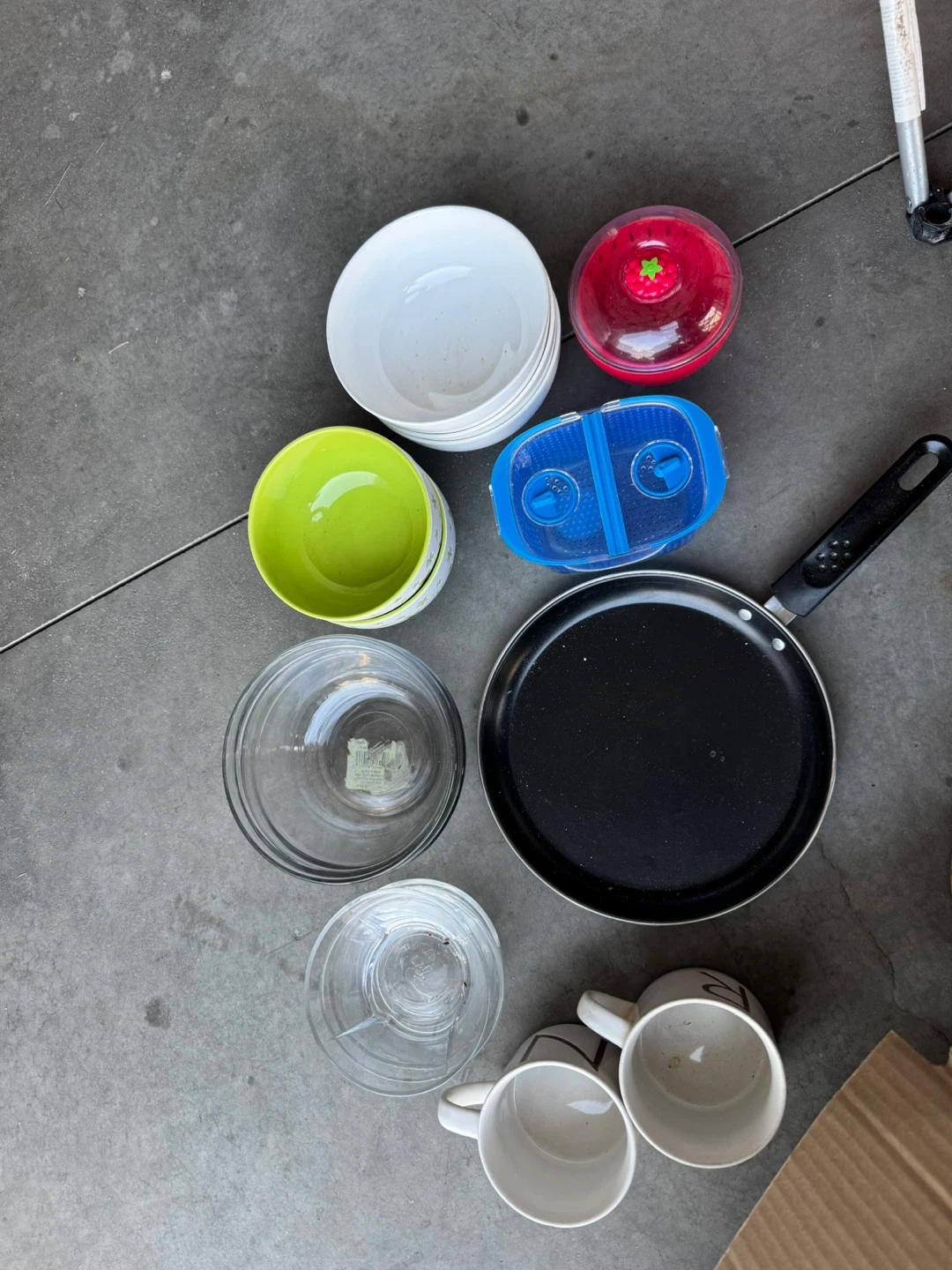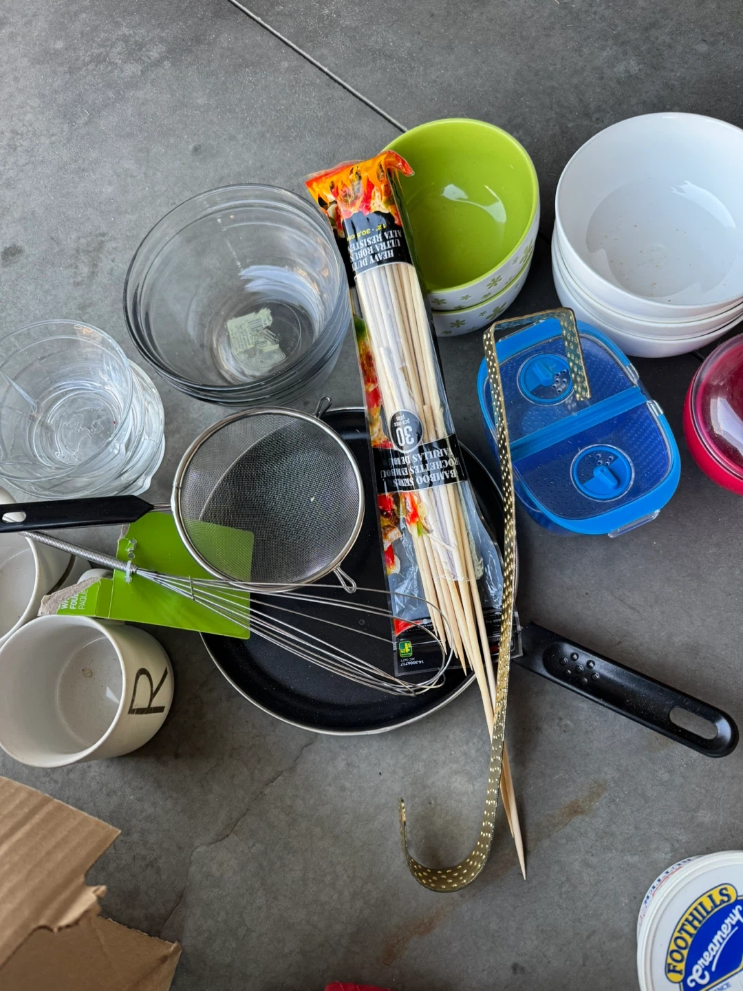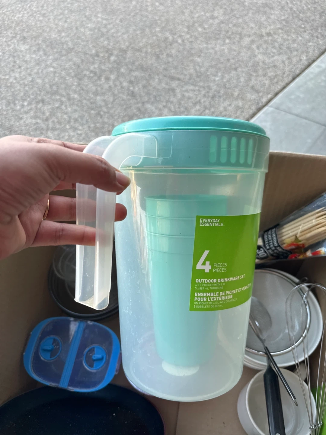 Selling a kitchenware set that includes a pitcher, bowls, skewers, and other items! Great for someone just starting out or looking to expand their kitchen supplies