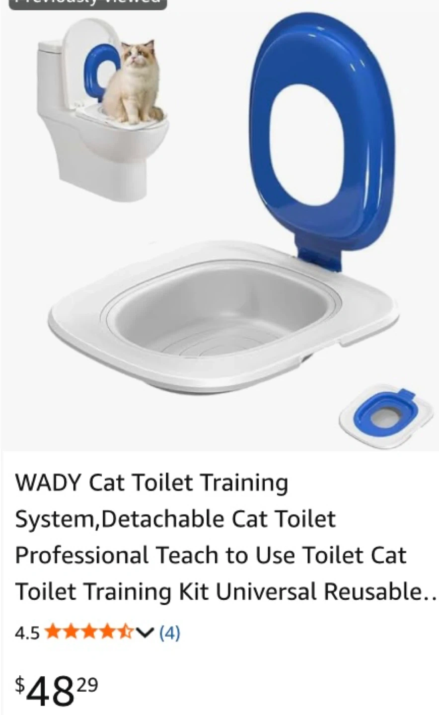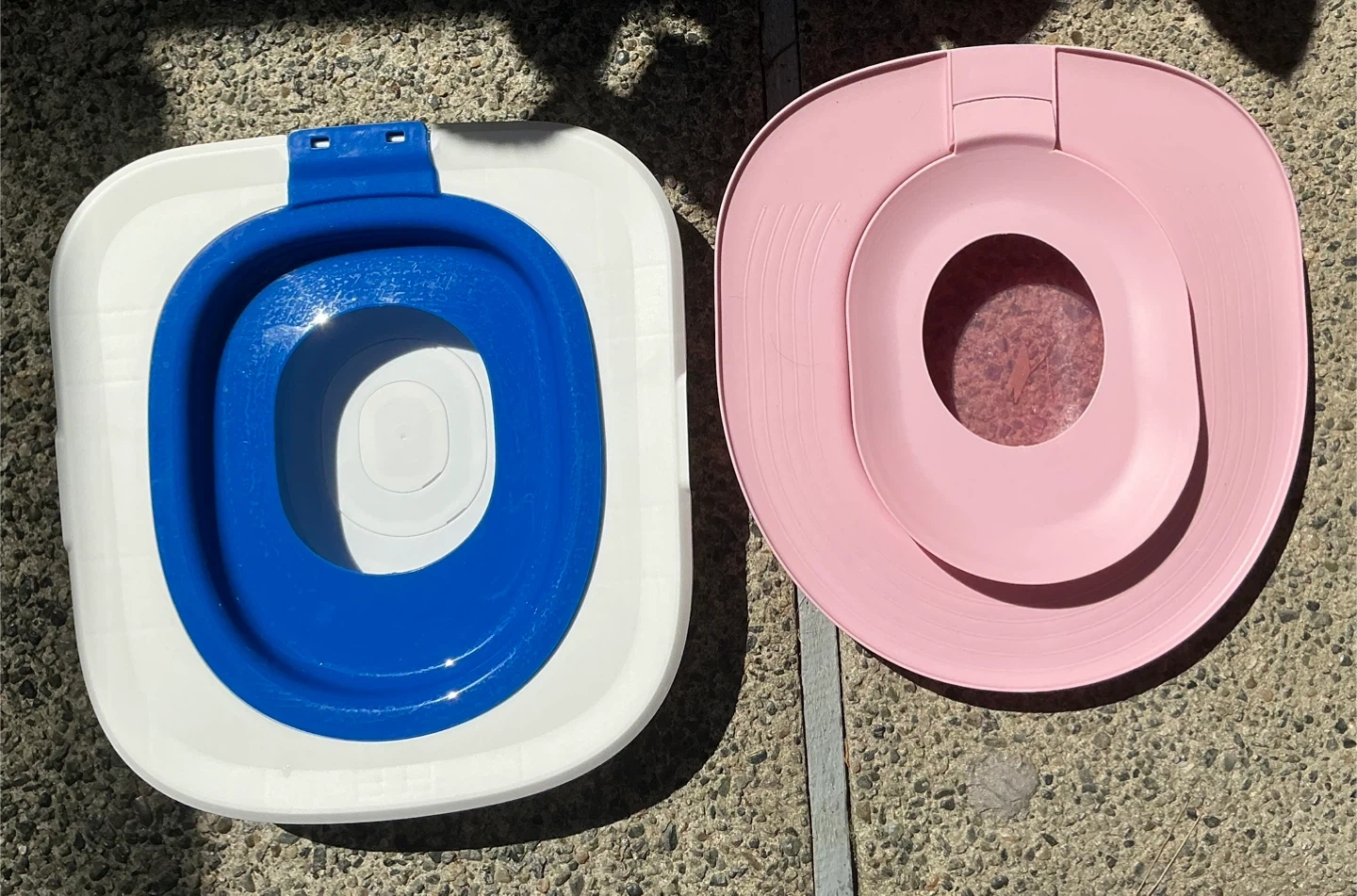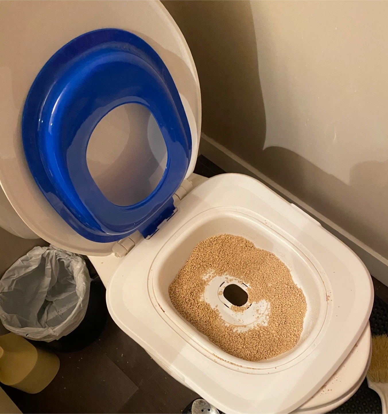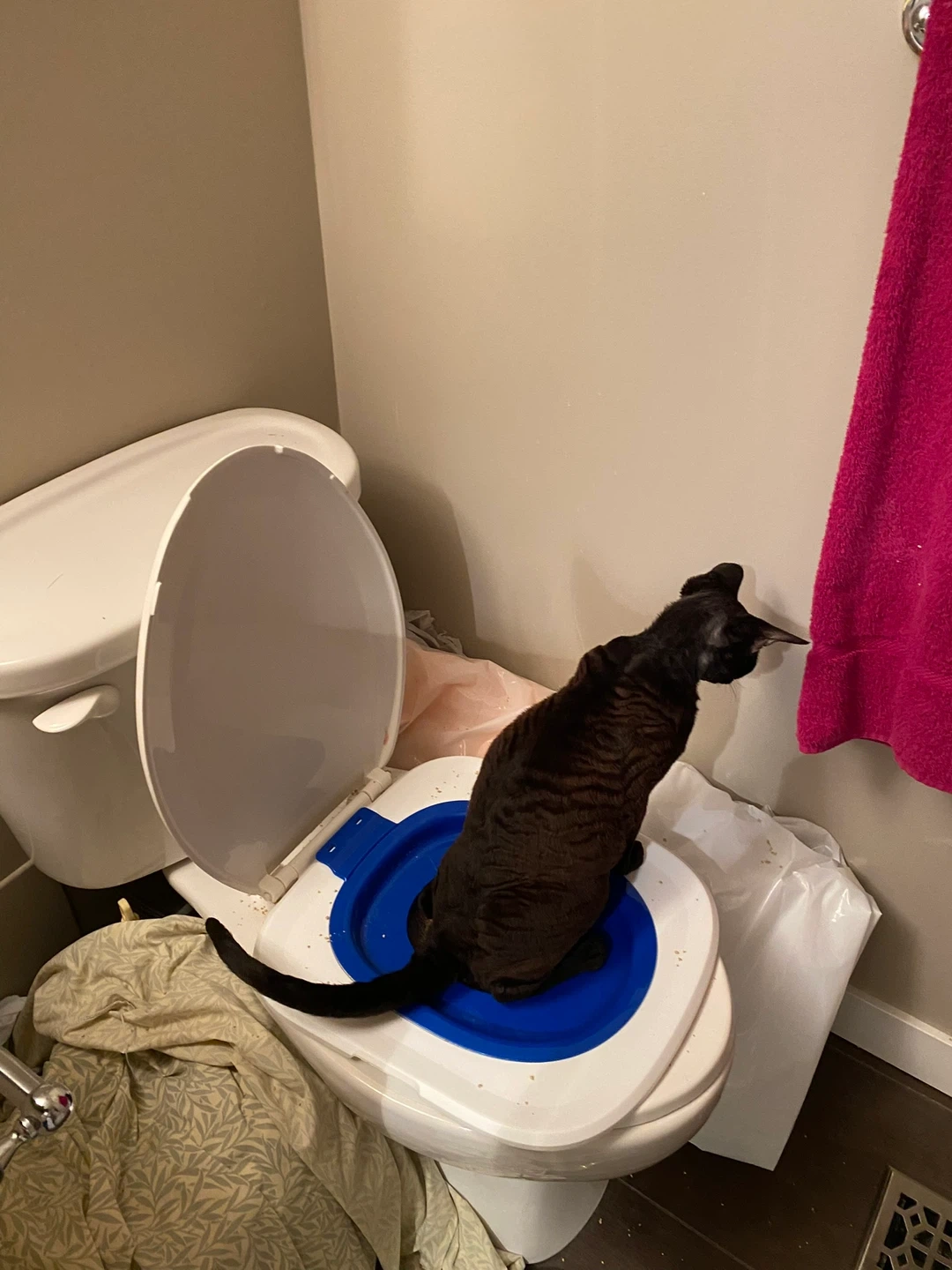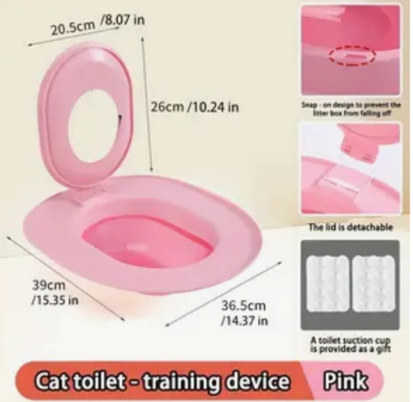 This is a cat toilet training kit with a double layer design. It's suitable for most toilet specifications and is made with safety material. It's durable, recyclable, and easy to install. Cleaning is easier with this system Will include a second toilet training set for free that has a small chip in it, but does not affect the usage And will also include a small cat nip plant Pick up in Steveston(Richmond)