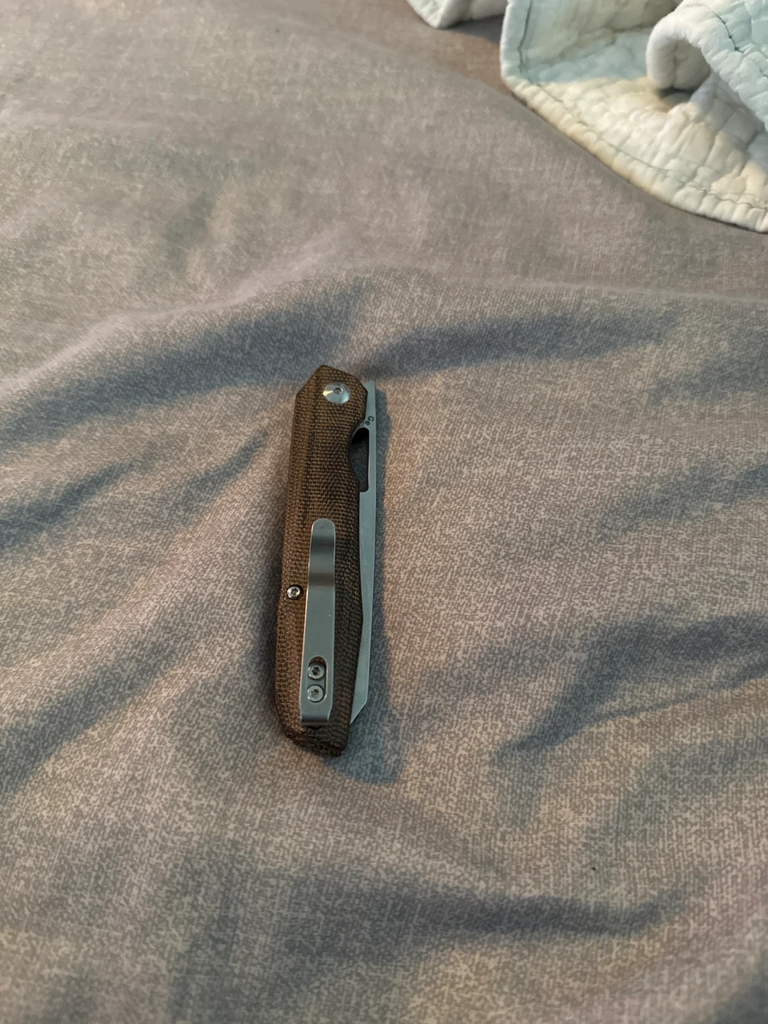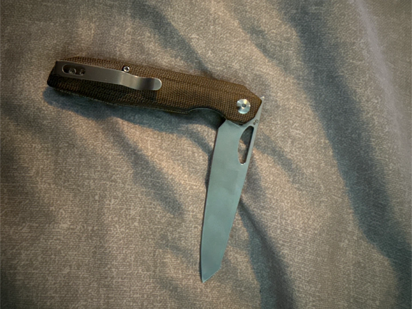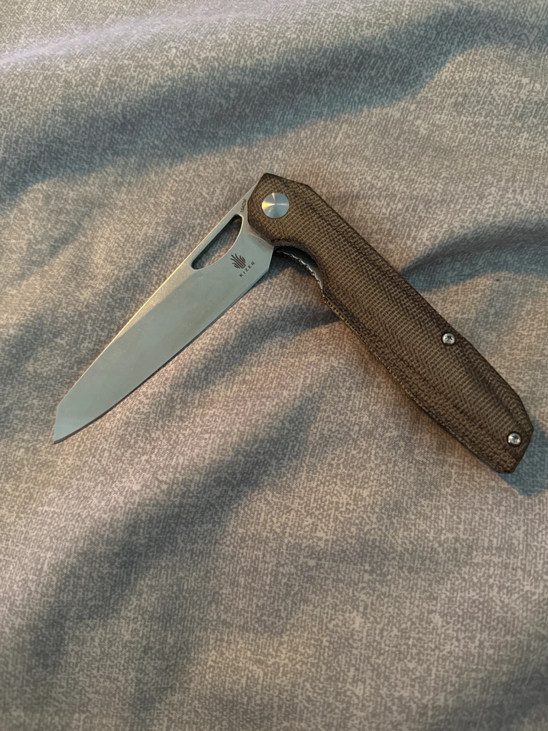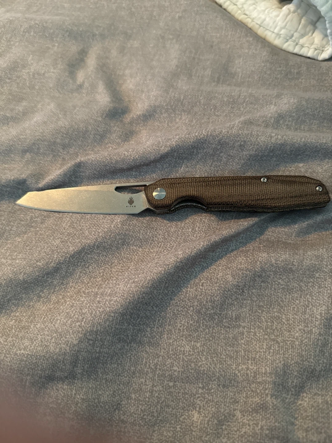 Selling a Kizer Vanguard Series Begleiter folding knife. This knife features a textured handle and a sturdy blade. It's in great condition and ready for a new home!