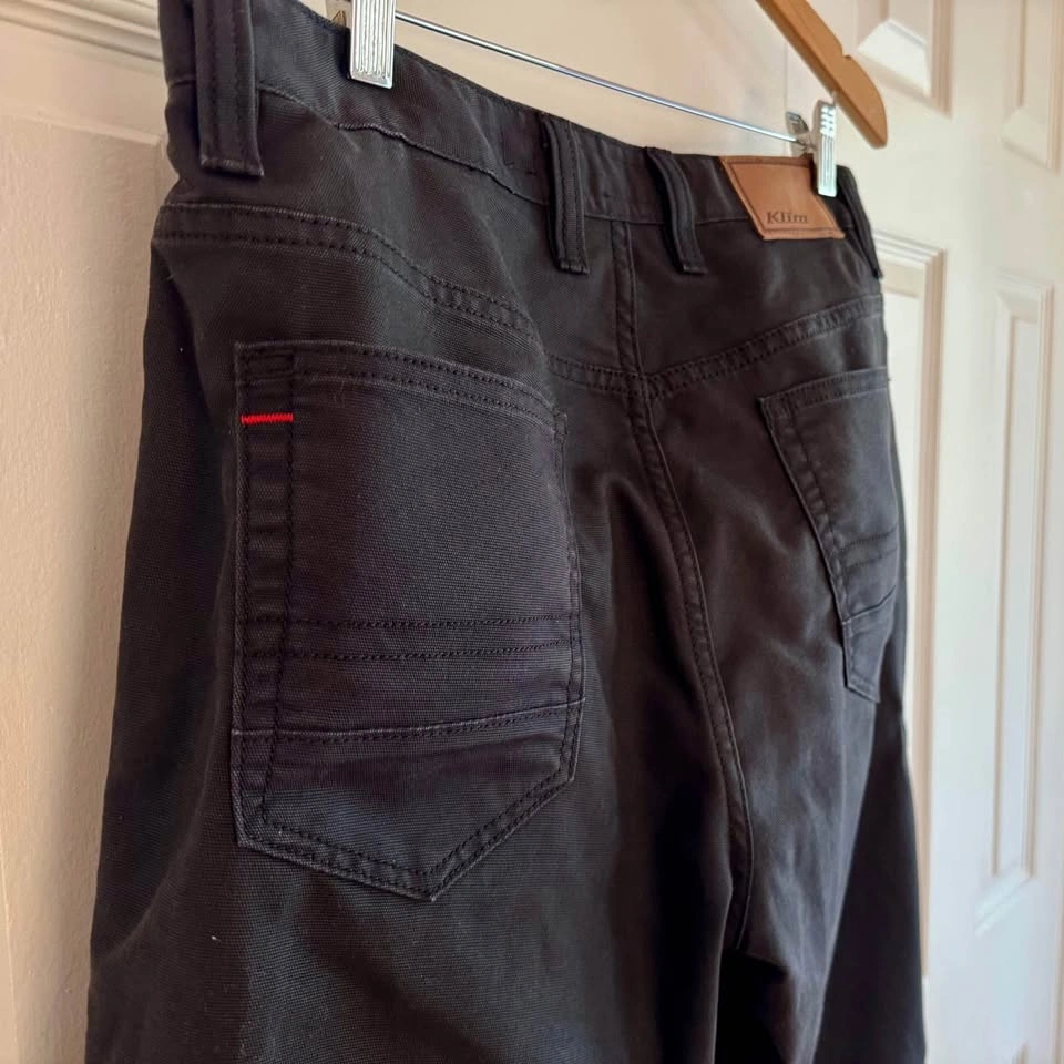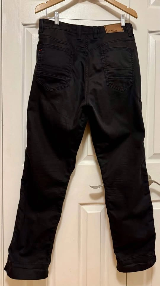 Used 1 season, light use. Black Mens, size 32/30 “Moto casual” riding pants - durable, breathable, with practical features, and all-day comfort Slim vented armour brings full protection with increased flexibility, lighter weight Features: - D30® IP Ghost vented hip and knee armour - Durable breathable stretch canvas shell - Double-layered cuffs and knees - Reflective strip inside bottom cuffs (fold up for reflective) - Pockets: 2 hand, 2 seat, 1 thigh phone - Streamlined interior (no liner)