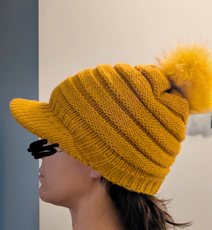 Mustard Yellow warm and cozy knit beanie. Features a large fluffy pom pom and ribbed knit design. Lined with soft fleece. Perfect for cold weather. Ready to be picked up at 2451 Yonge Street at Starbucks (3 blocks north of Yonge and Eglinton station) Can deliver with +$3 delivery fee