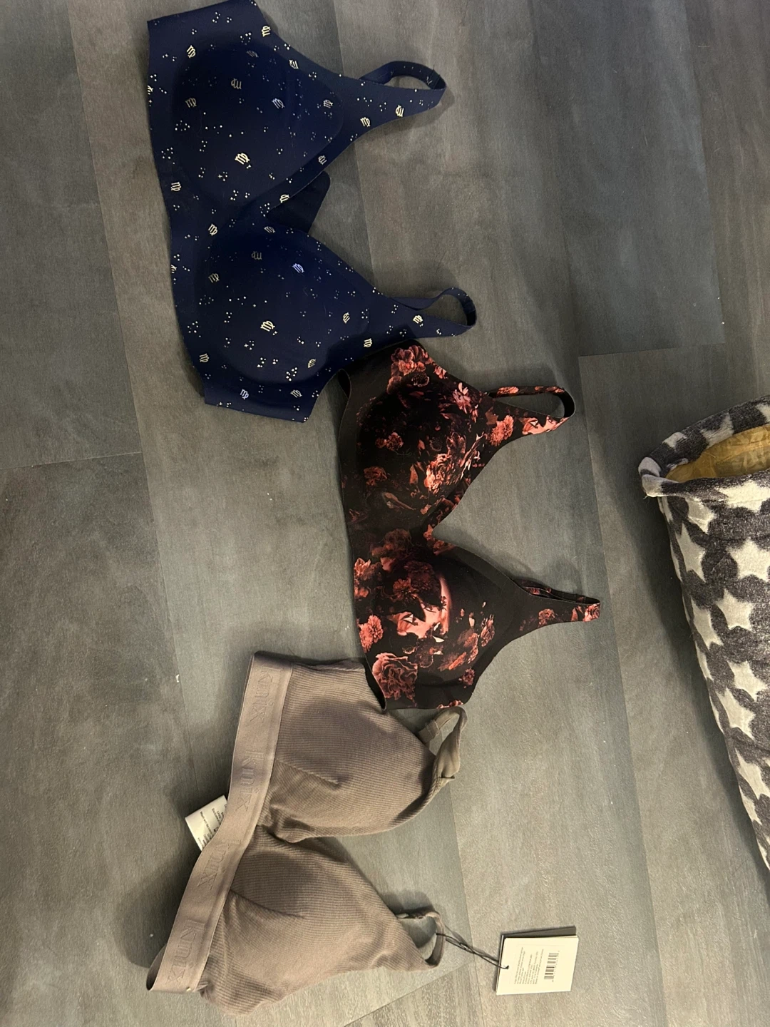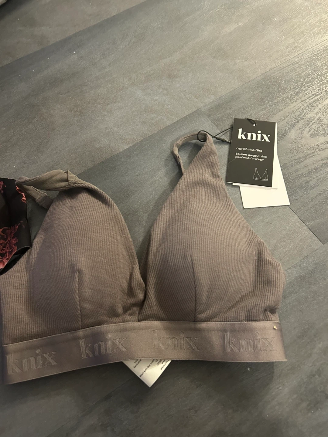 Selling a bundle of Knix bras! They are in great condition and ready for a new home. Includes a navy blue bra with a subtle pattern and a grey ribbed modal bra. Super comfy!