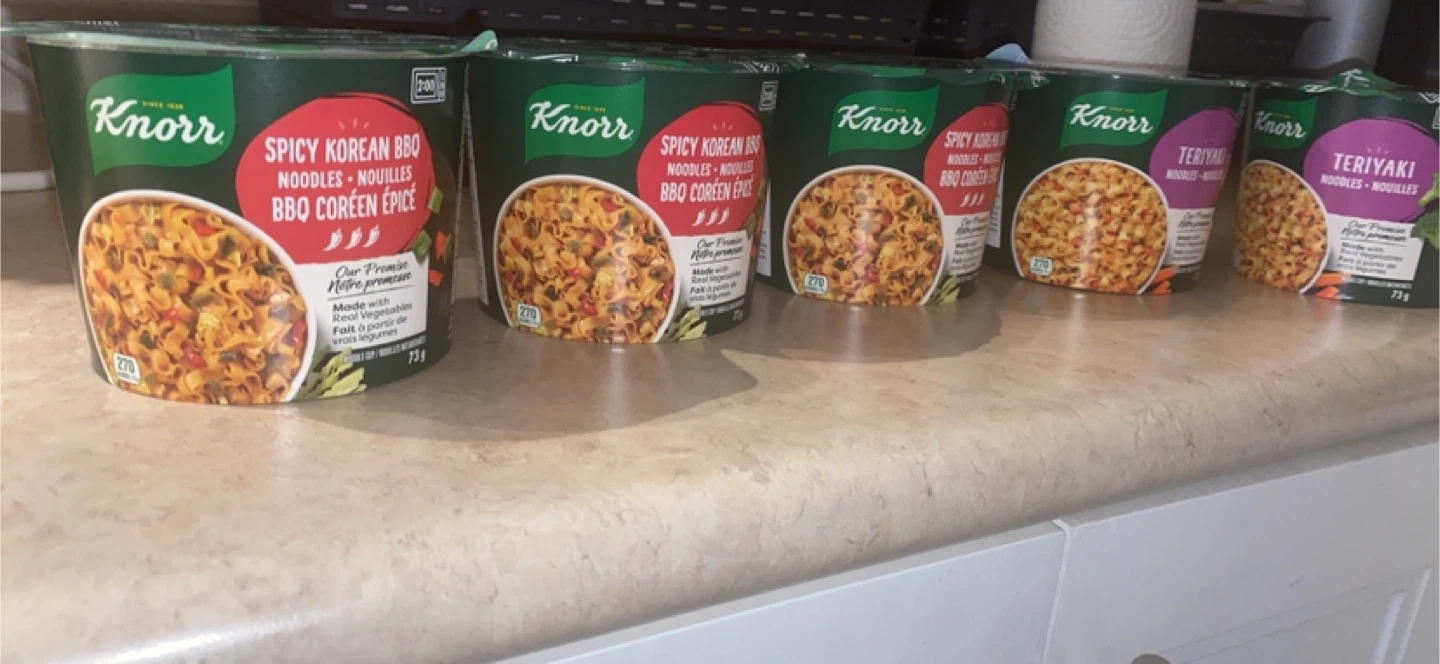 Selling a few cups of Knorr noodles! There are some Spicy Korean BBQ and Teriyaki flavours. Porch pick up cash only. $5 for 5.
