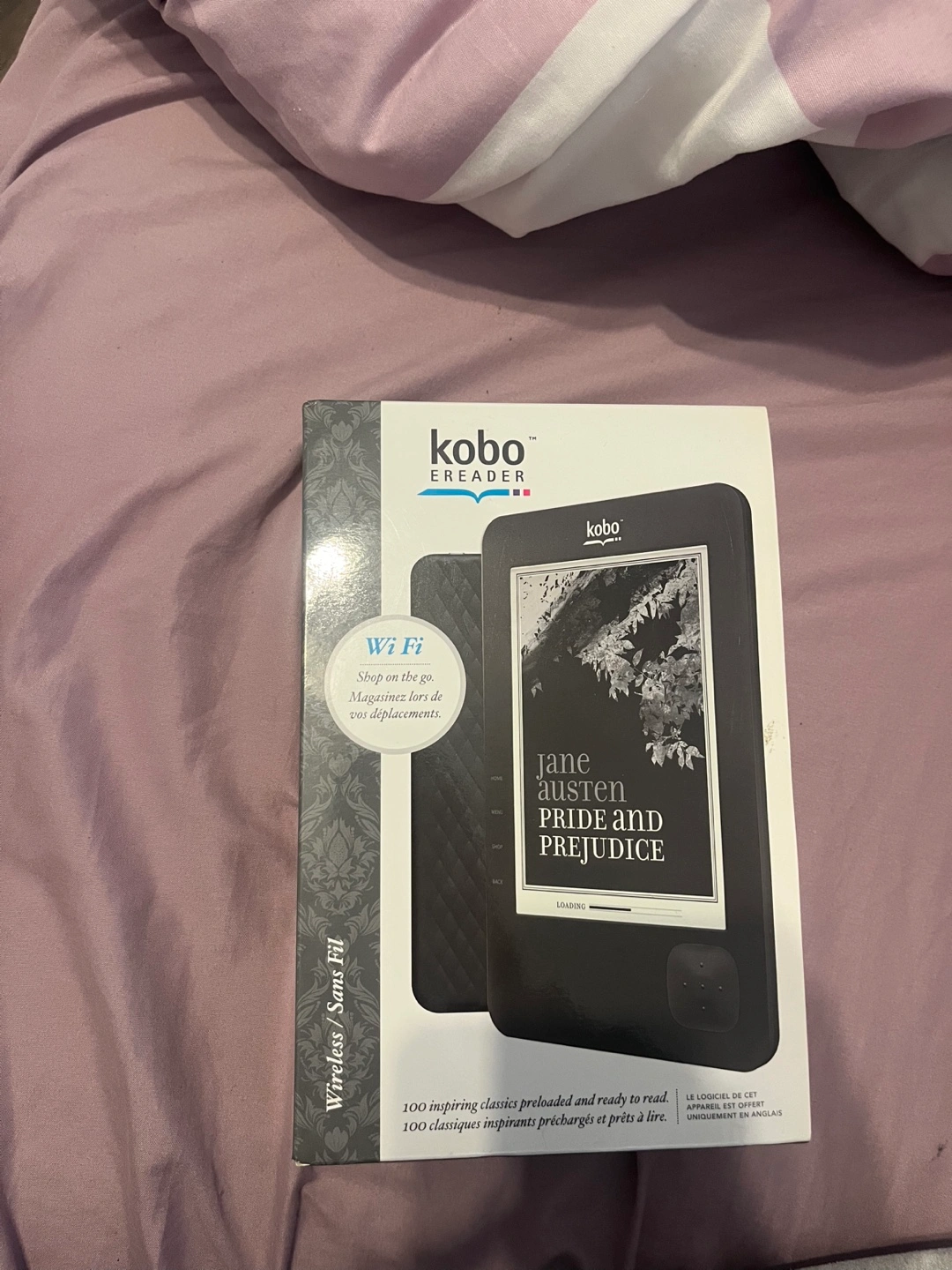 Selling a brand new Kobo eReader! It comes in its original box. It's preloaded with 100 inspiring classics and ready to read. Perfect for reading on the go! Charger is not included.