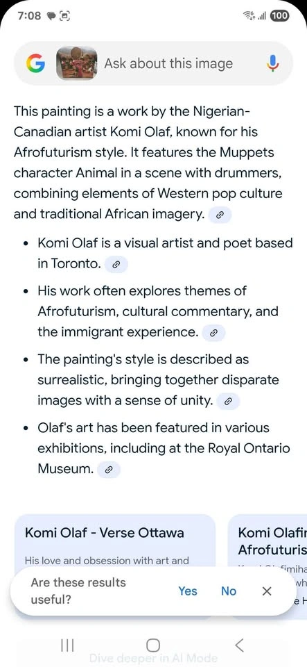 Excellent condition, original painting by Toronto artist Komi Olaf. Buyer to pickup hwy 27 and Finch