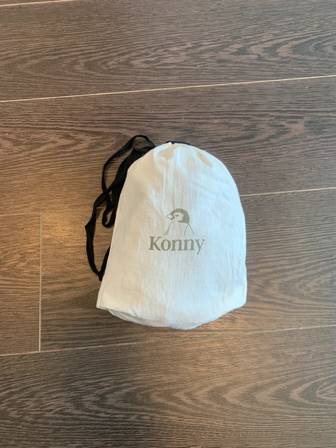 Selling a Konny baby carrier in size L. It's in great condition and comes with its original bag. Perfect for keeping your little one close and comfy while you're on the go! • Worn fewer than 5 times. • Comes with the original pouch. • Lightweight, breathable, and easy to put on. • Perfect for newborn to early-infant stage.