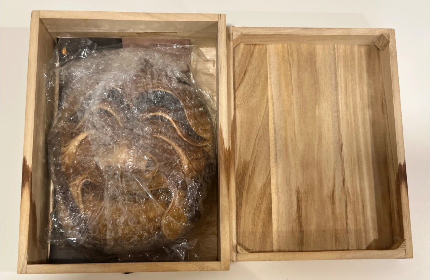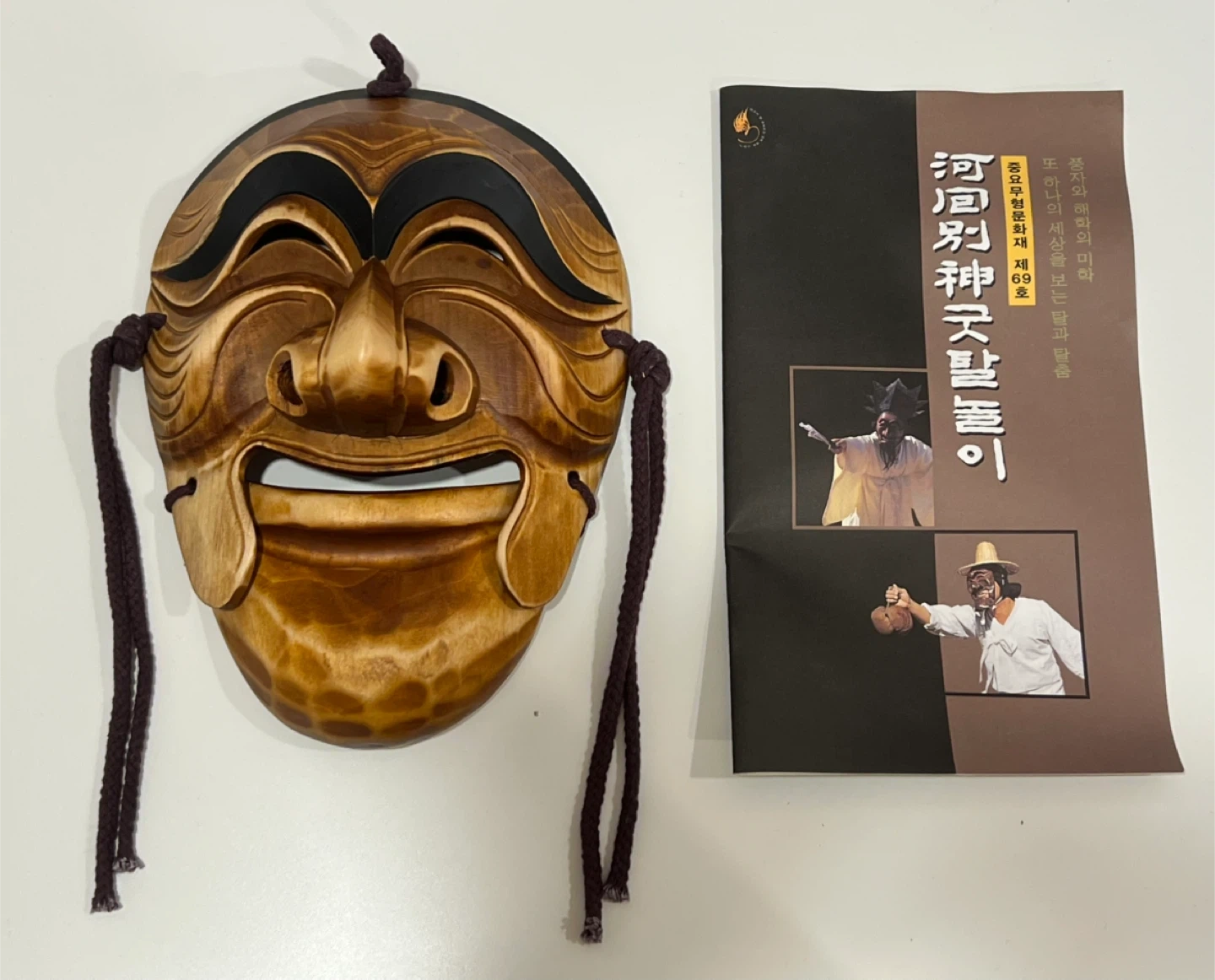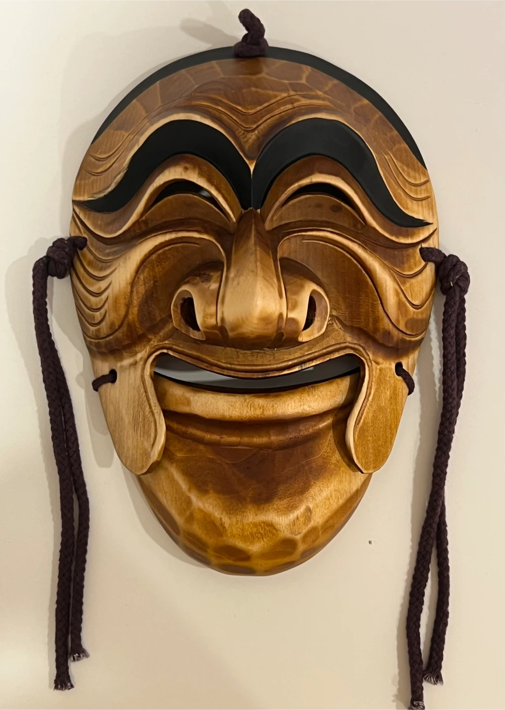 Traditional Korean Hahoe mask handcrafted from wood Comes with original wooden box and an informational booklet Unique piece of Korean cultural art