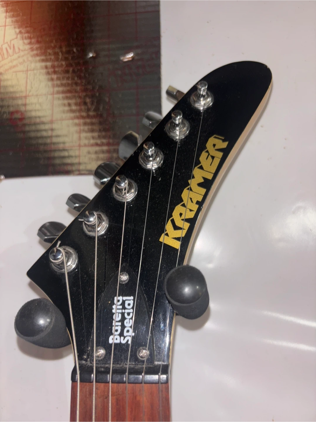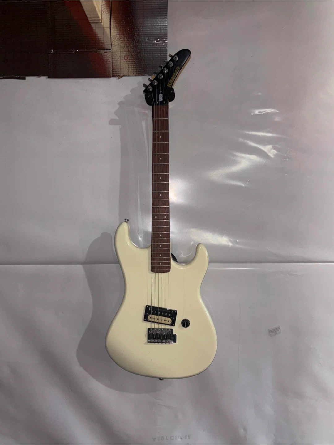 Selling a Kramer Baretta Special electric guitar. It's in good condition and ready to play! The guitar features a white finish and a single humbucker pickup. Perfect for rock and metal! I will accept negotiations :)