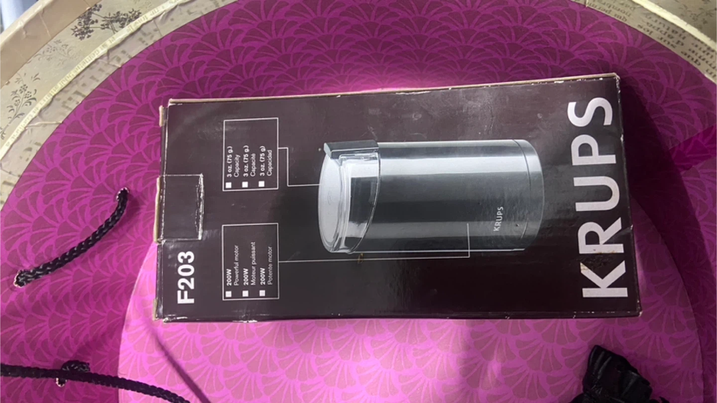 Selling a Krups F203 coffee and spice grinder. It has a 200W powerful motor and a capacity of 3 oz (75g). Perfect for grinding coffee beans or spices!