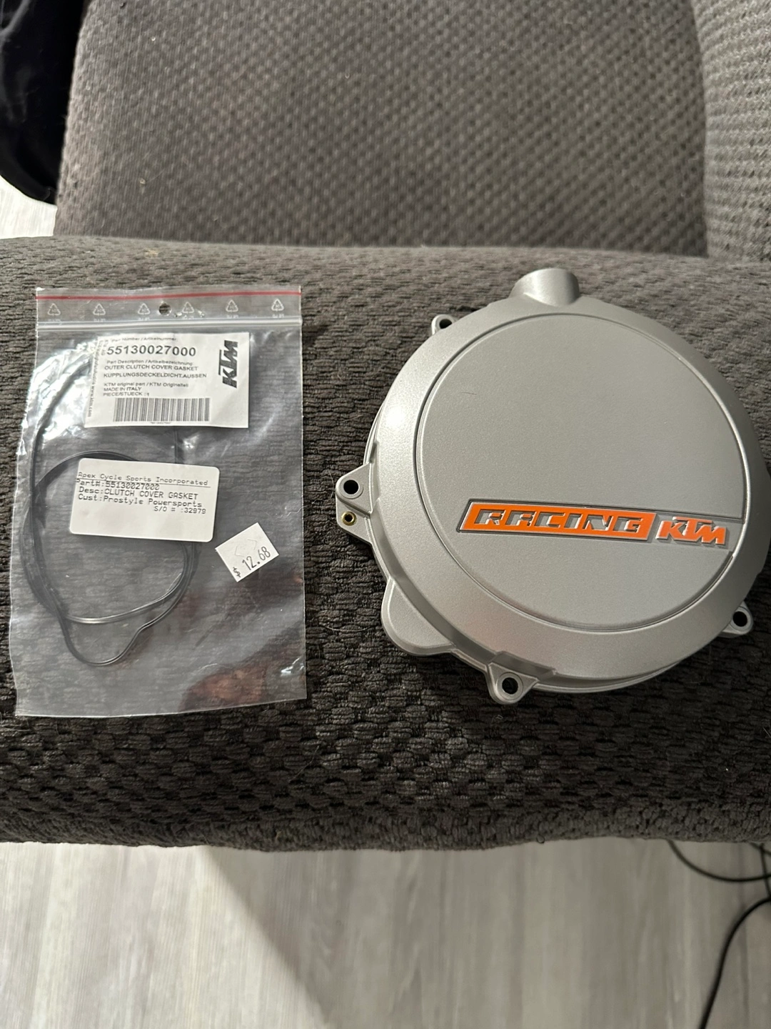 Selling a 2012 KTM 250 SX clutch cover and gasket set. The parts are: - Clutch cover outside - Gasket (under gasket casing) Both brand new, bought but never used. Receipt shown in last picture