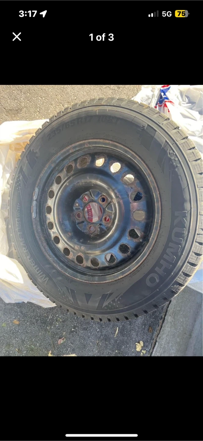 Tires used for less than 15,000 km Kuhmo Ice/Snow rated Initially paid $1200 4 Tires come with rims: 235/64 R17 5/114 bolt pattern