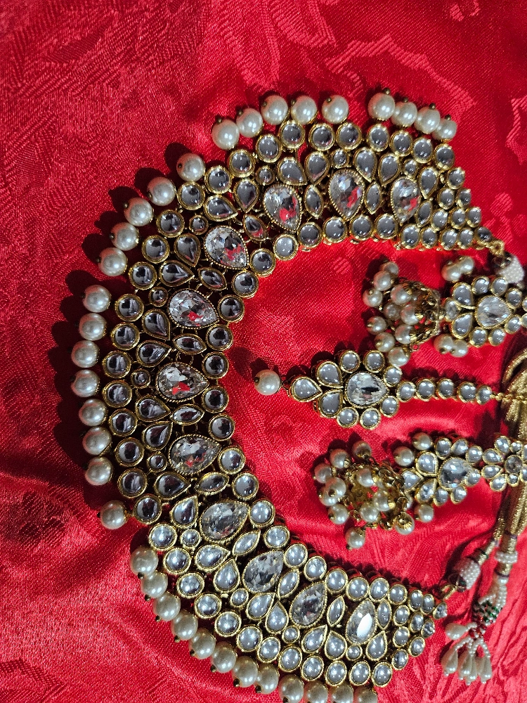 Gold Jhumka Earrings Tikka necklace setHand made ptra Jewellery