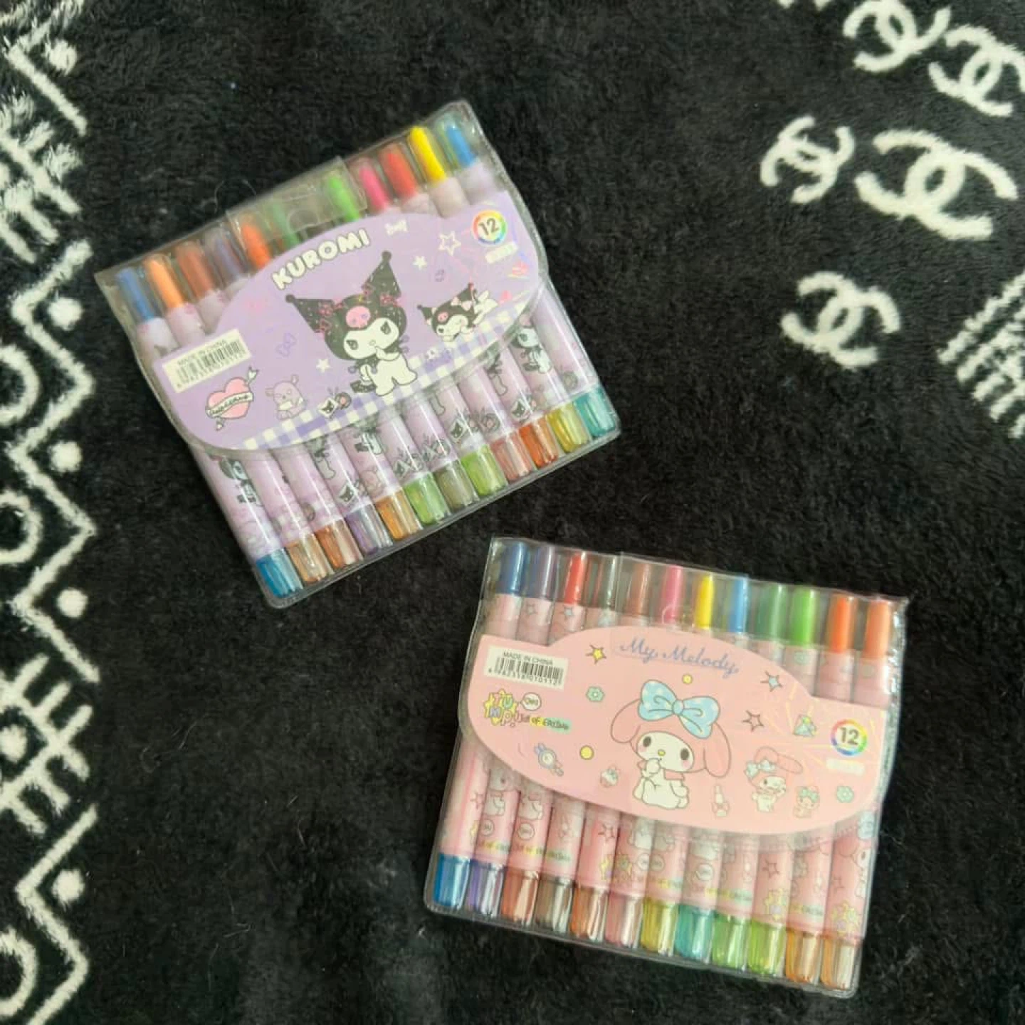 Selling two sets of crayons featuring Kuromi and My Melody! Each pack contains 12 crayons in a variety of colours. Perfect for kids or anyone who loves cute stationery! Located at NE Cash or E-transfer