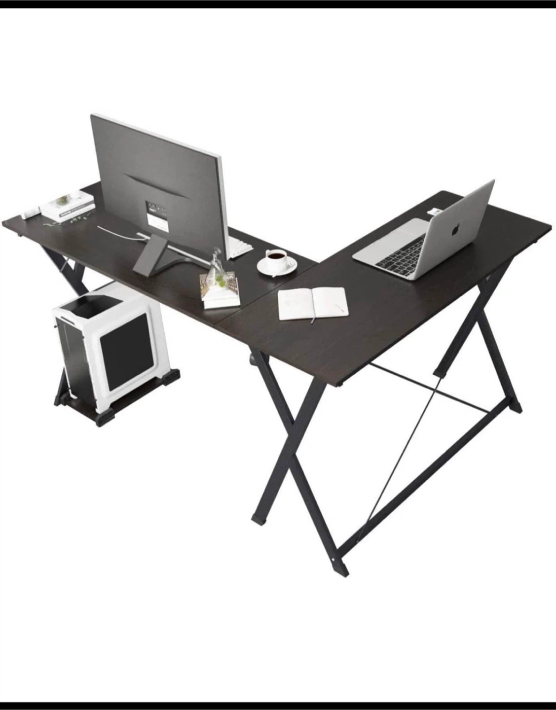Selling this L-shaped corner desk, great for home office set up! Reason: Moving to a new apartment and needed to downsize. Desk is in Great condition. Has minor cosmetic damage (light scratches) on the desk surface but not obvious and the vinyl cover is unbroken. 🛠️Easy to disassemble and assemble; I don’t have the manual but all holes and screw packs are labelled. I can also send video how to assemble, if required . ⚠️Missing 1 screw but doesn’t not affect table integrity. Possible to find a screw of same length at Home Depot. Originally bought from Amazon . Pick up only. Thanks!