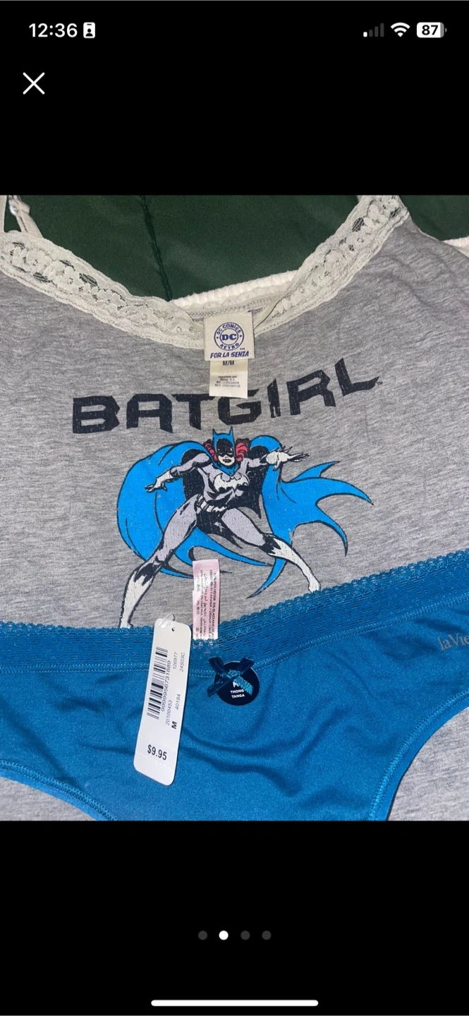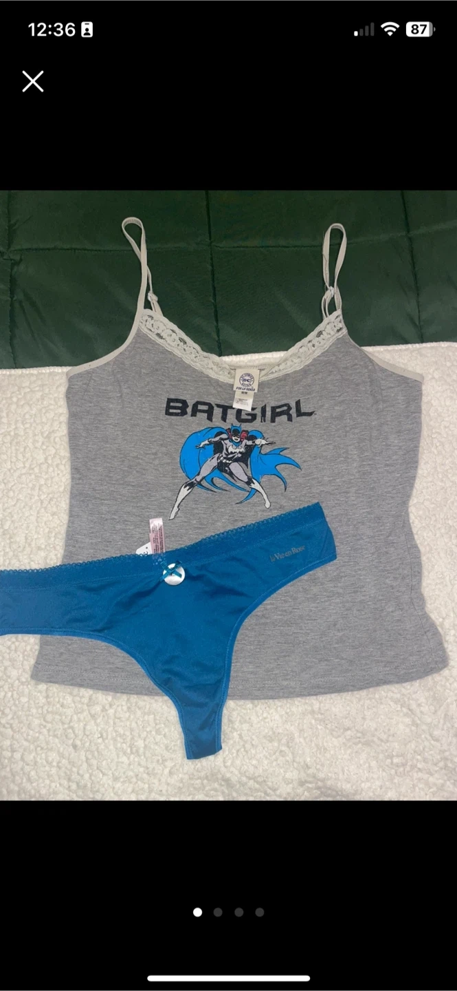 Cute La Senza Batgirl cami and panty set! The cami is grey with a Batgirl graphic, and the panty is blue. Both are size M. Pick up near knight and 33rd