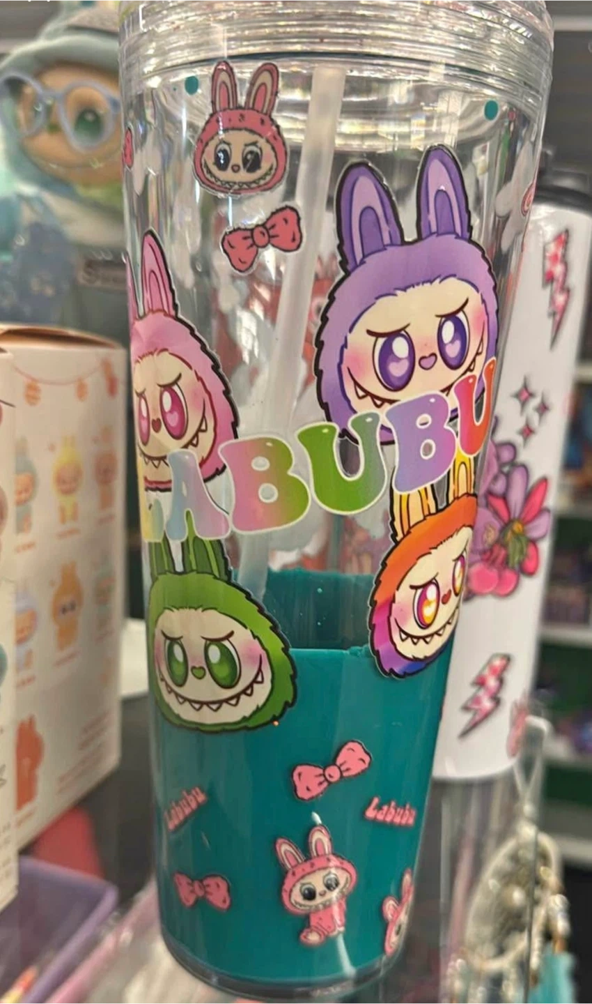 Super cute Labubu tumbler! It has a straw and fun colourful designs all around the cup
