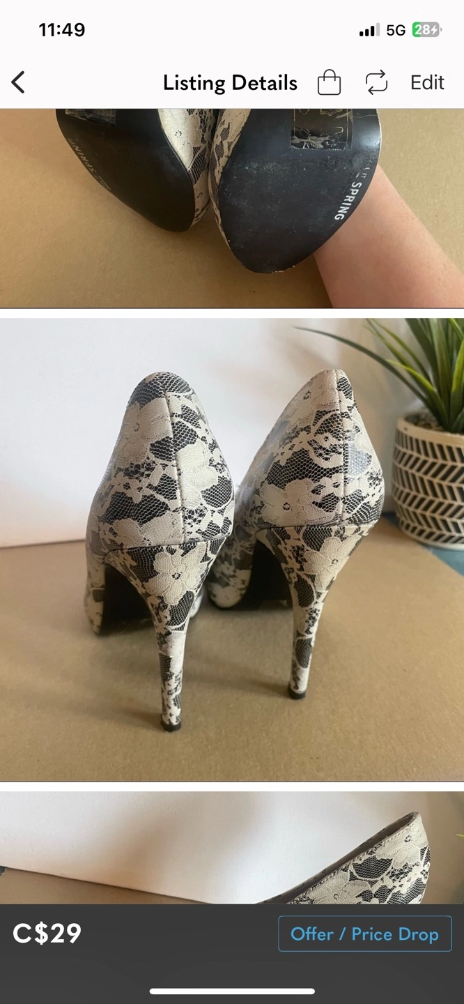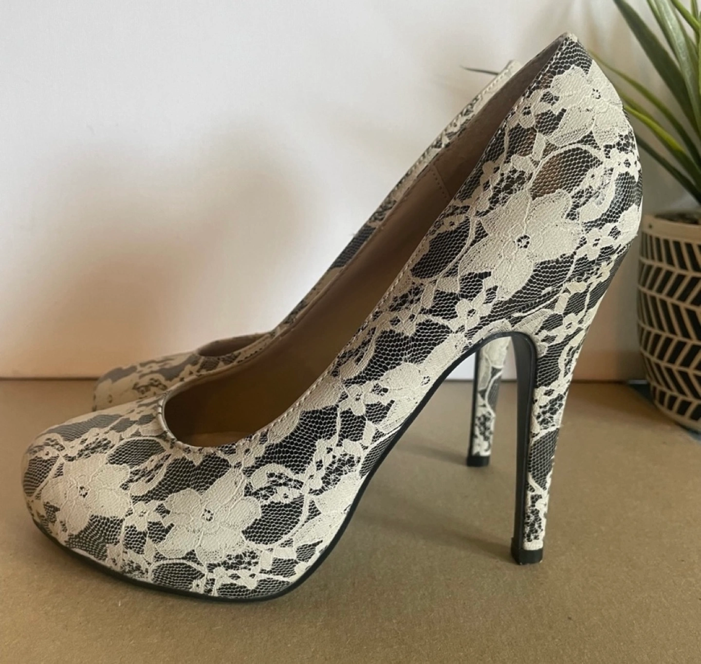 Call it Spring Cream and black lace high heels Size 7 1/2