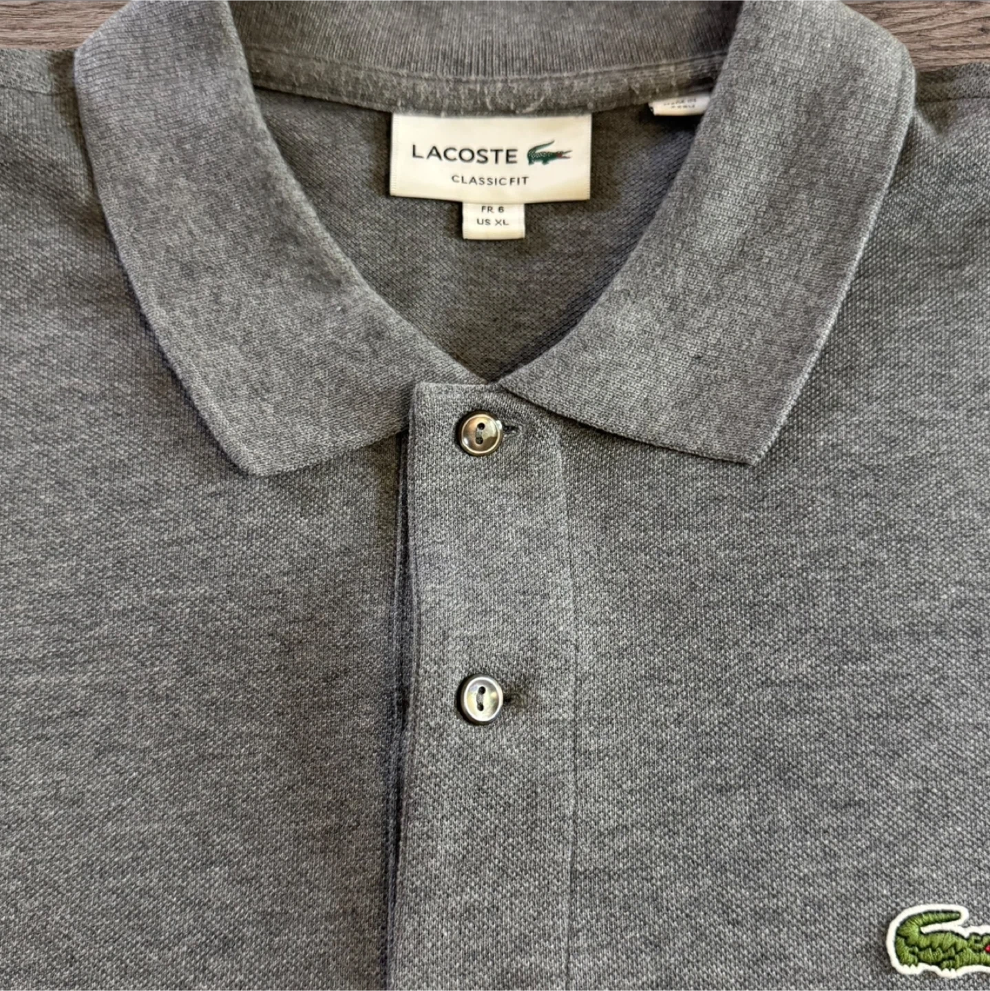 Lacoste Classic Fit polo shirt in size XL. It's a nice grey colour. The material feels great and it’s in good condition!