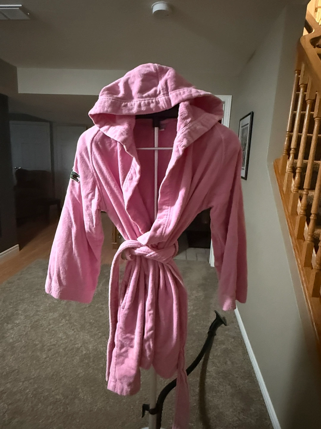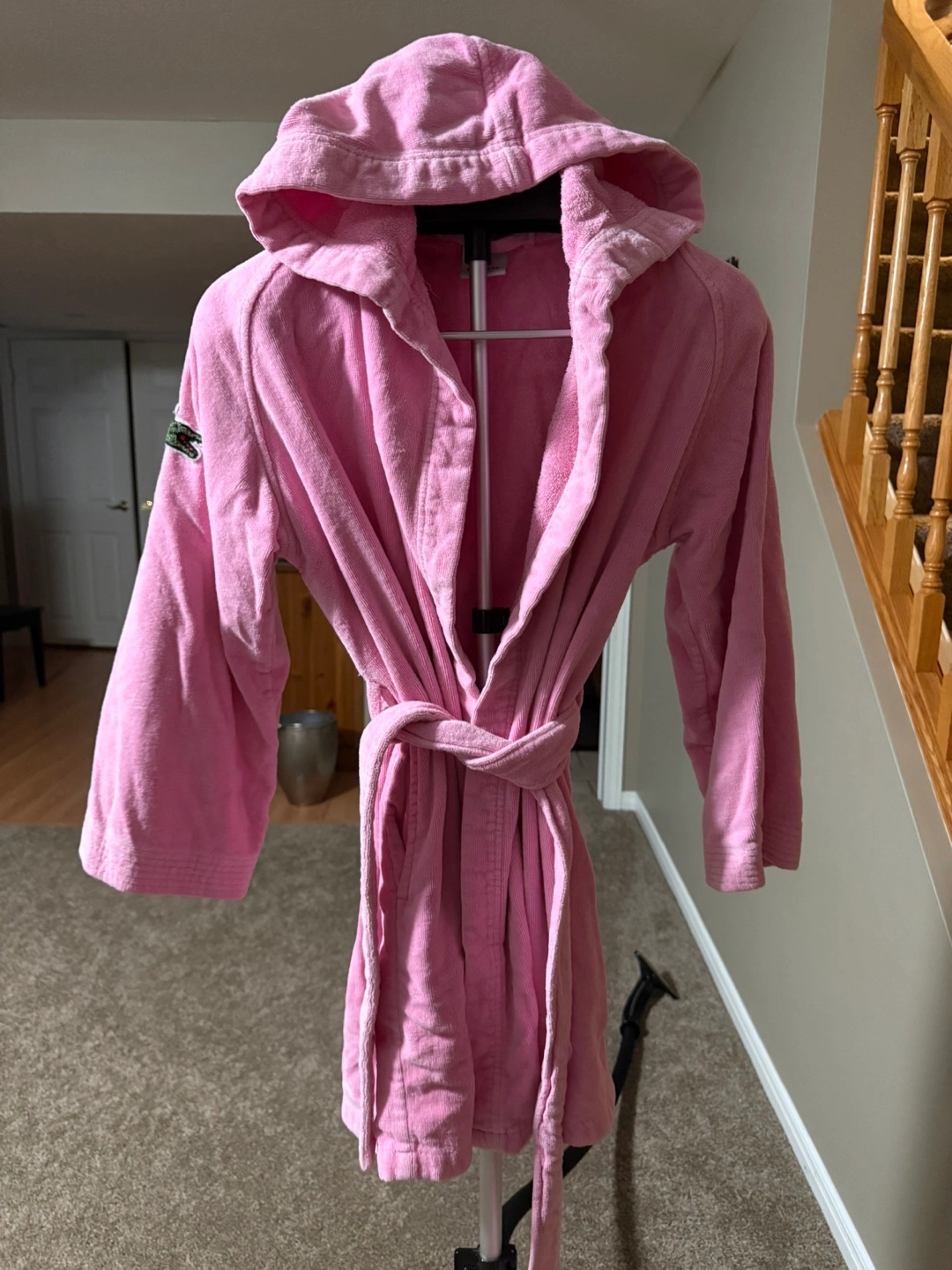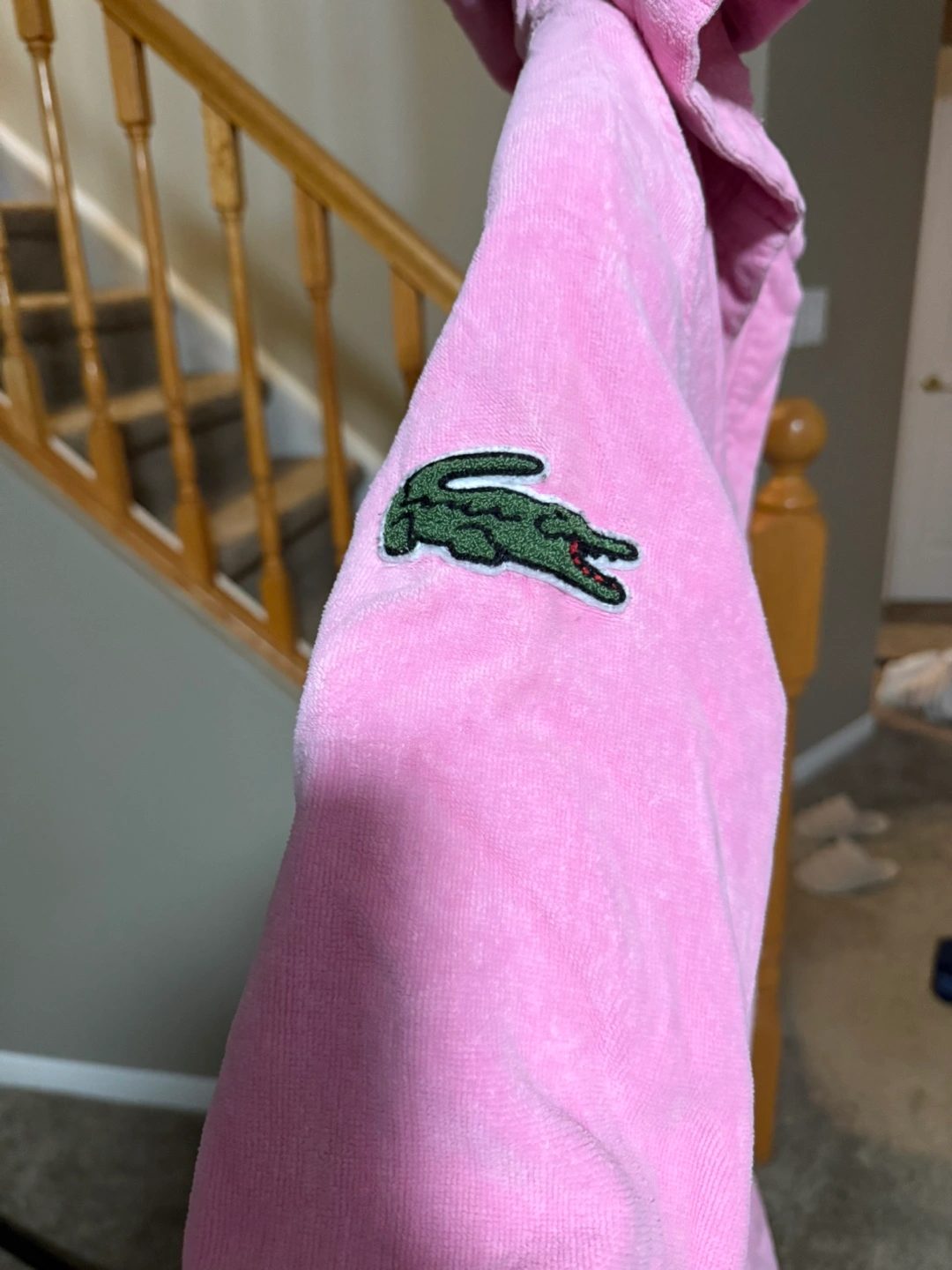 Cozy up with this lovely Lacoste bathrobe! It's a soft, hooded bathrobe in a pretty pink colour. Perfect for lounging around the house after a bath or shower