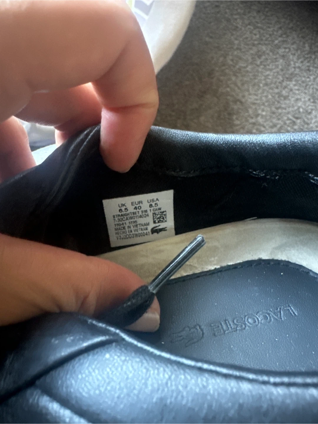 Selling a pair of Lacoste Straightset sneakers in black leather. They're in great shape and super comfy! Size US 6.5 / EUR 40