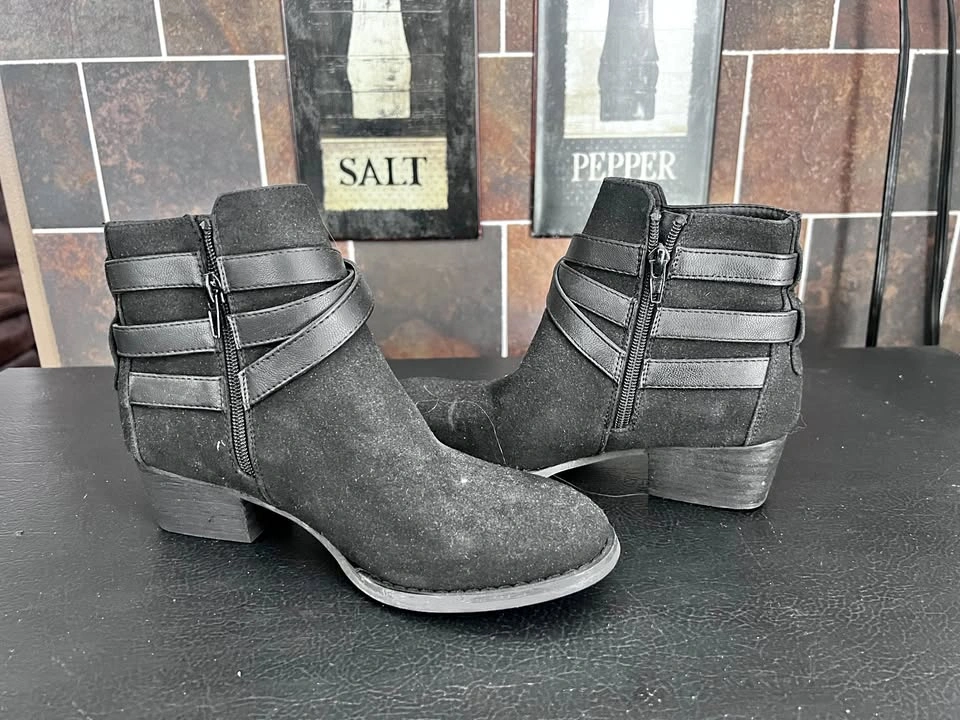 Ardene Black Heeled Combat Boots - Size 8