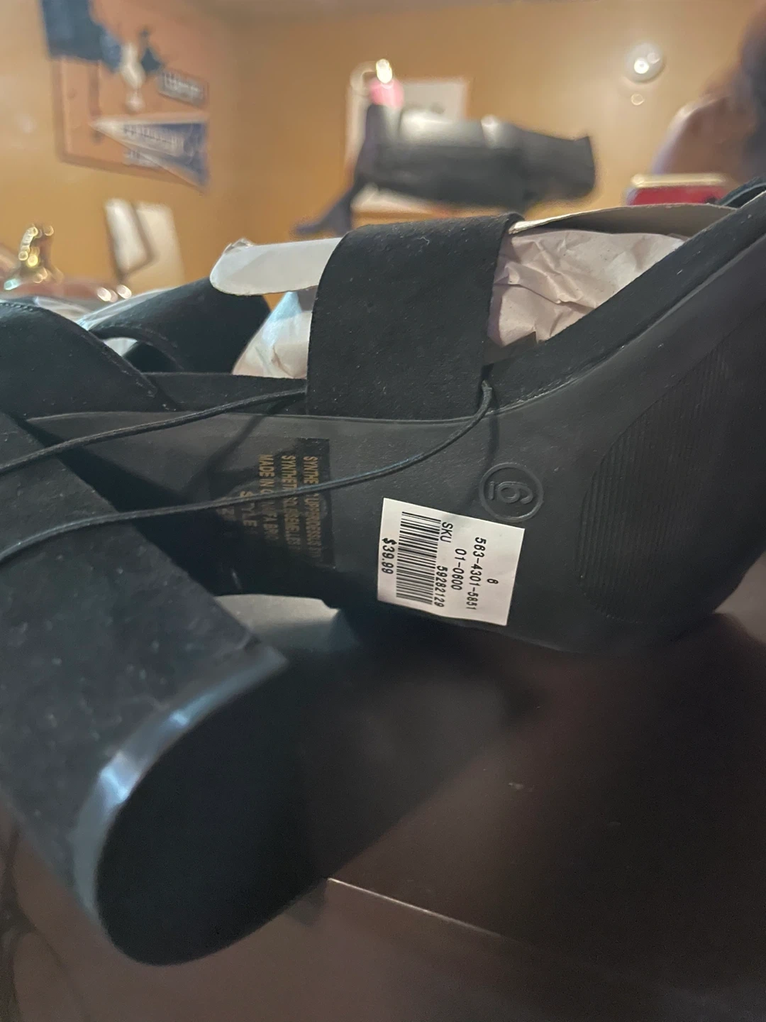 These STREETWEAR heels are Brand New with original tags and box and ready for a new home! (Too high for me) They are a size 6 and feature a stylish black design. The original price tag shows they were $39.99.
