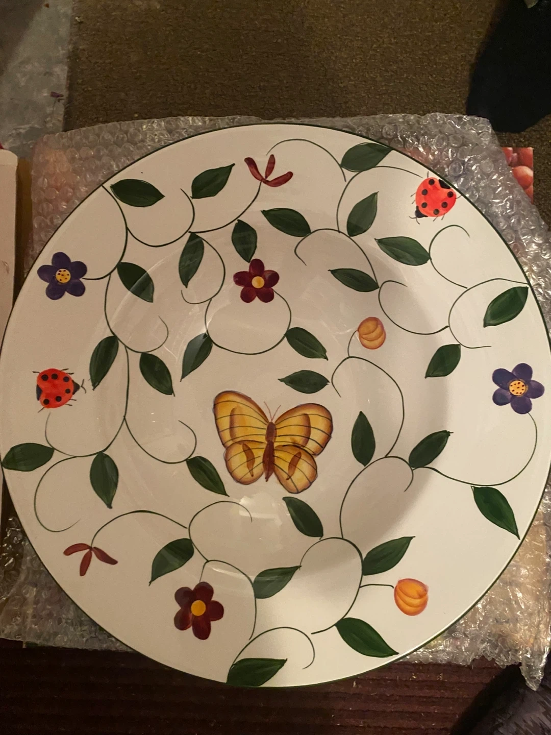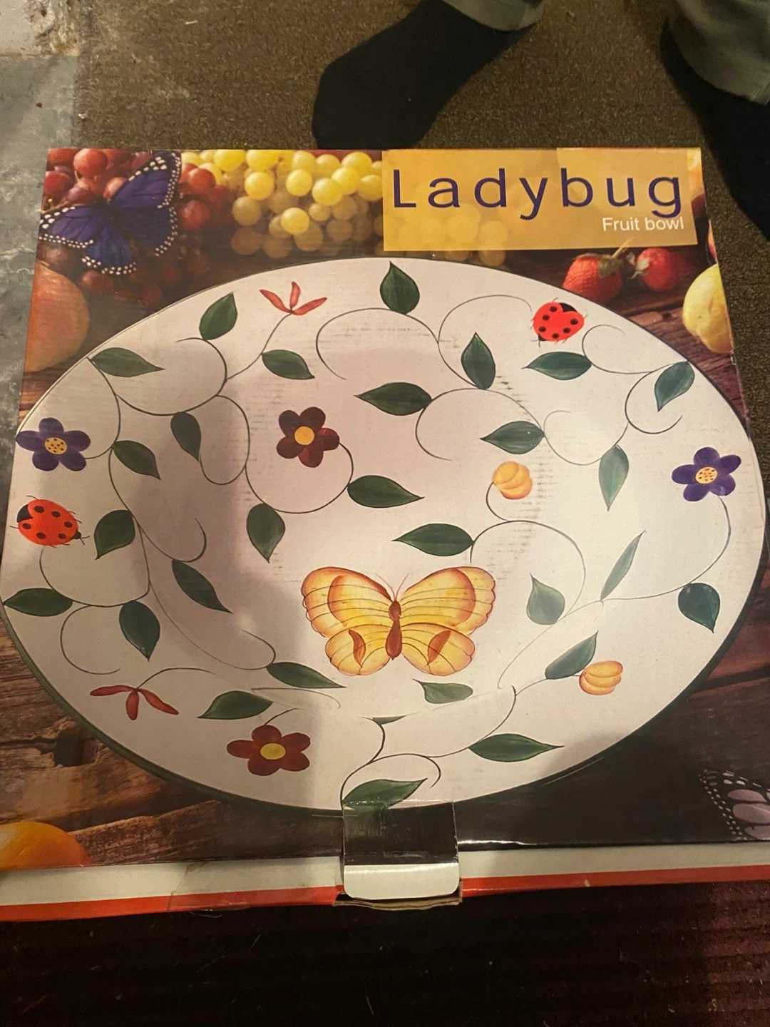 Selling a lovely Ladybug fruit bowl! It features a beautiful butterfly and ladybug design with floral accents. Perfect for adding a touch of charm to your kitchen or dining table