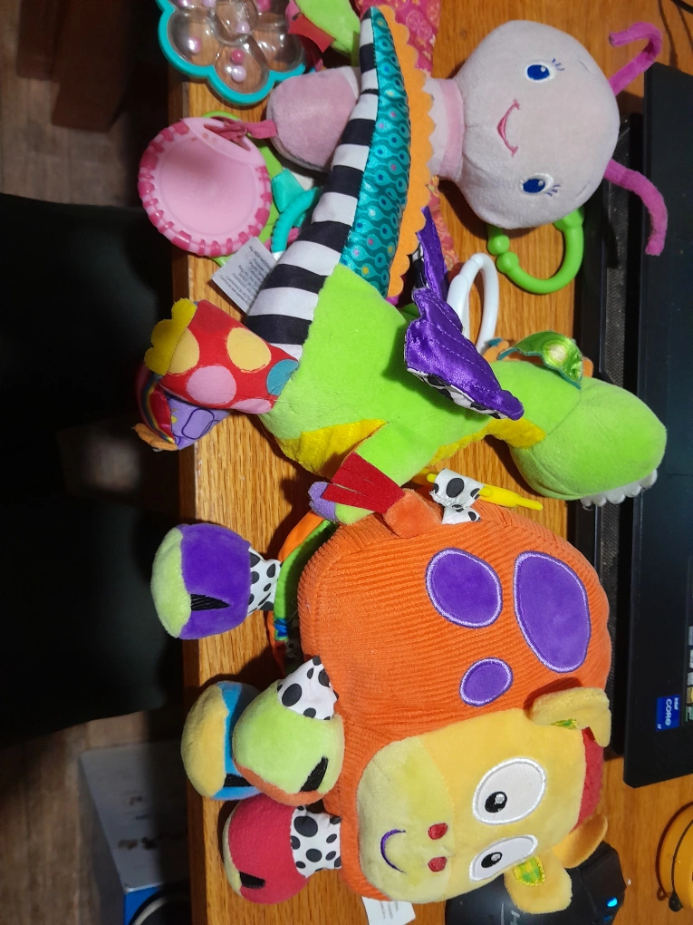 A collection of Lamaze clip-on stroller toys! These are great for keeping your little one entertained while you're on the go. Each toy has different textures and colours to stimulate your baby's senses and encourage development