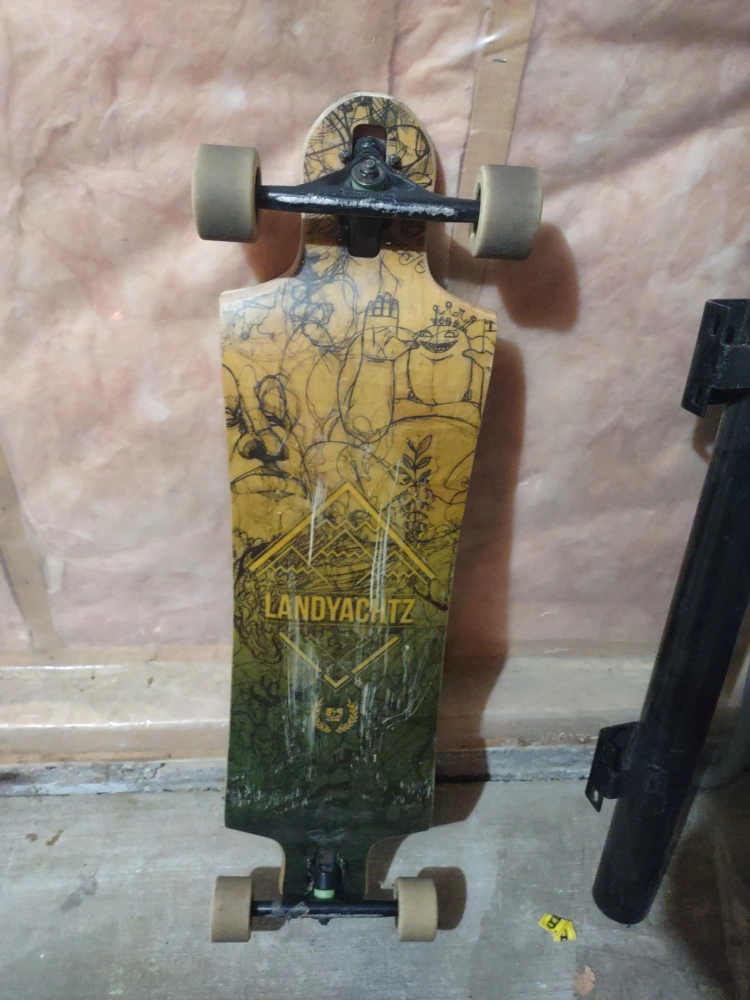 Selling a Landyachtz longboard skateboard. It has some wear and tear, but is still in good working condition. Great for cruising around town