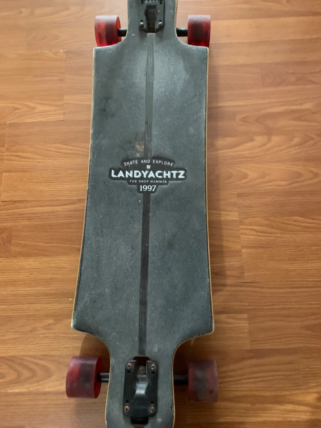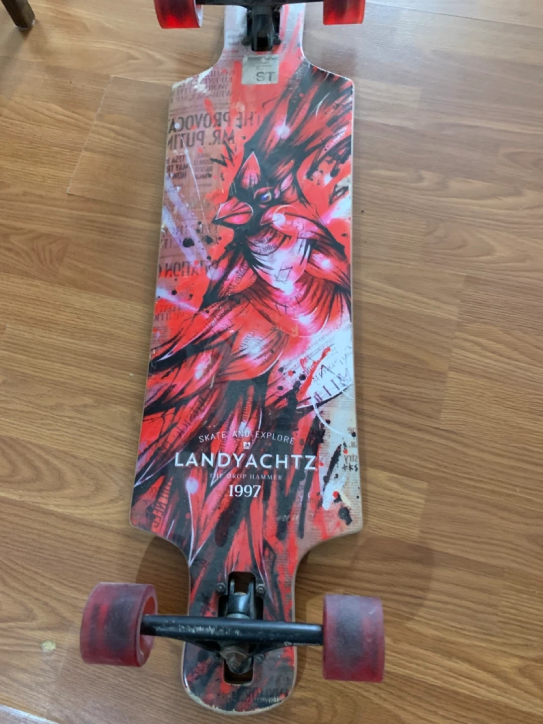 Selling a Landyachtz The Drop Hammer longboard. It has a cool red and white graphic design on the bottom. The trucks are Bear brand. There's some wear and tear, but it's still a fun ride. Originally, it retailed for $234.96! Asking $85 Call/text 431-792-3594
