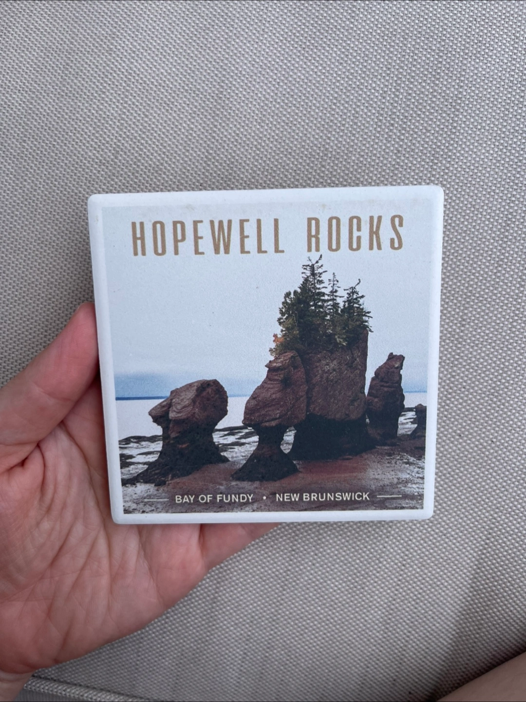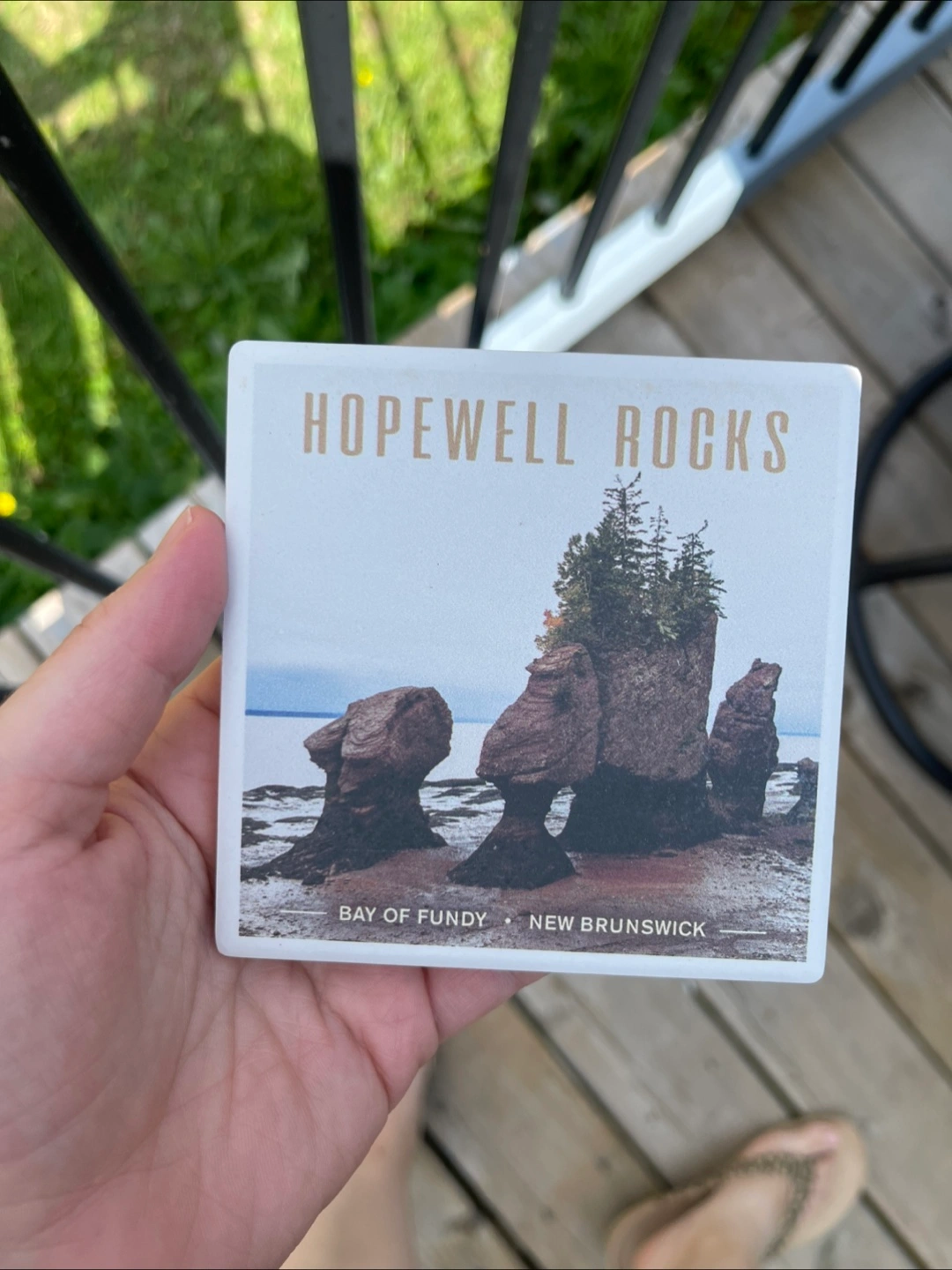 Selling a Lantern Press coaster featuring Hopewell Rocks in Bay of Fundy, New Brunswick! The coaster has a cork bottom and originally retailed for $7.99+tax