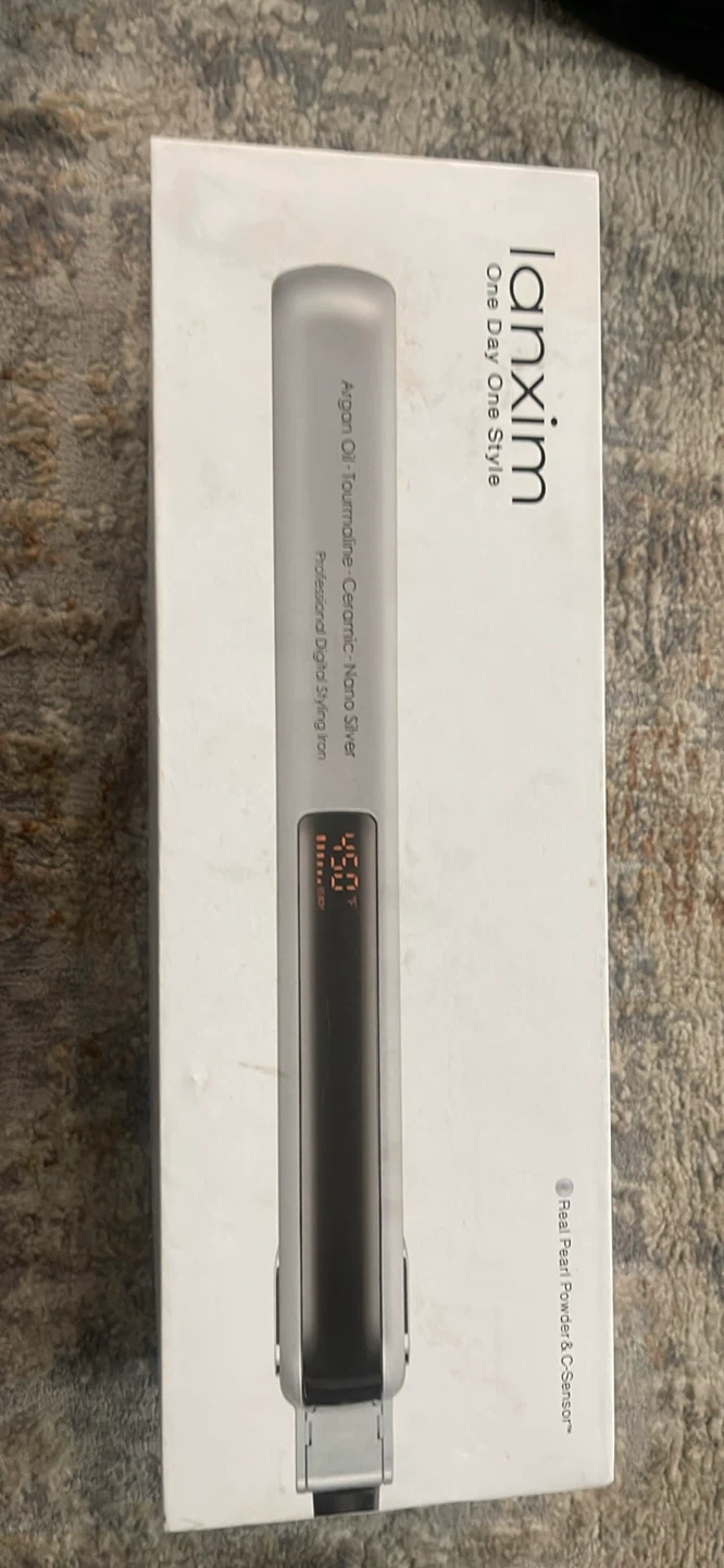 Selling a Lanxim One Day One Style hair straightener! It features Argan Oil Tourmaline Ceramic Nano Silver technology. The straightener is in excellent condition and comes with its original box and carrying case. It heats up quickly and is perfect for creating sleek, straight styles! Great for a present for any occasion.