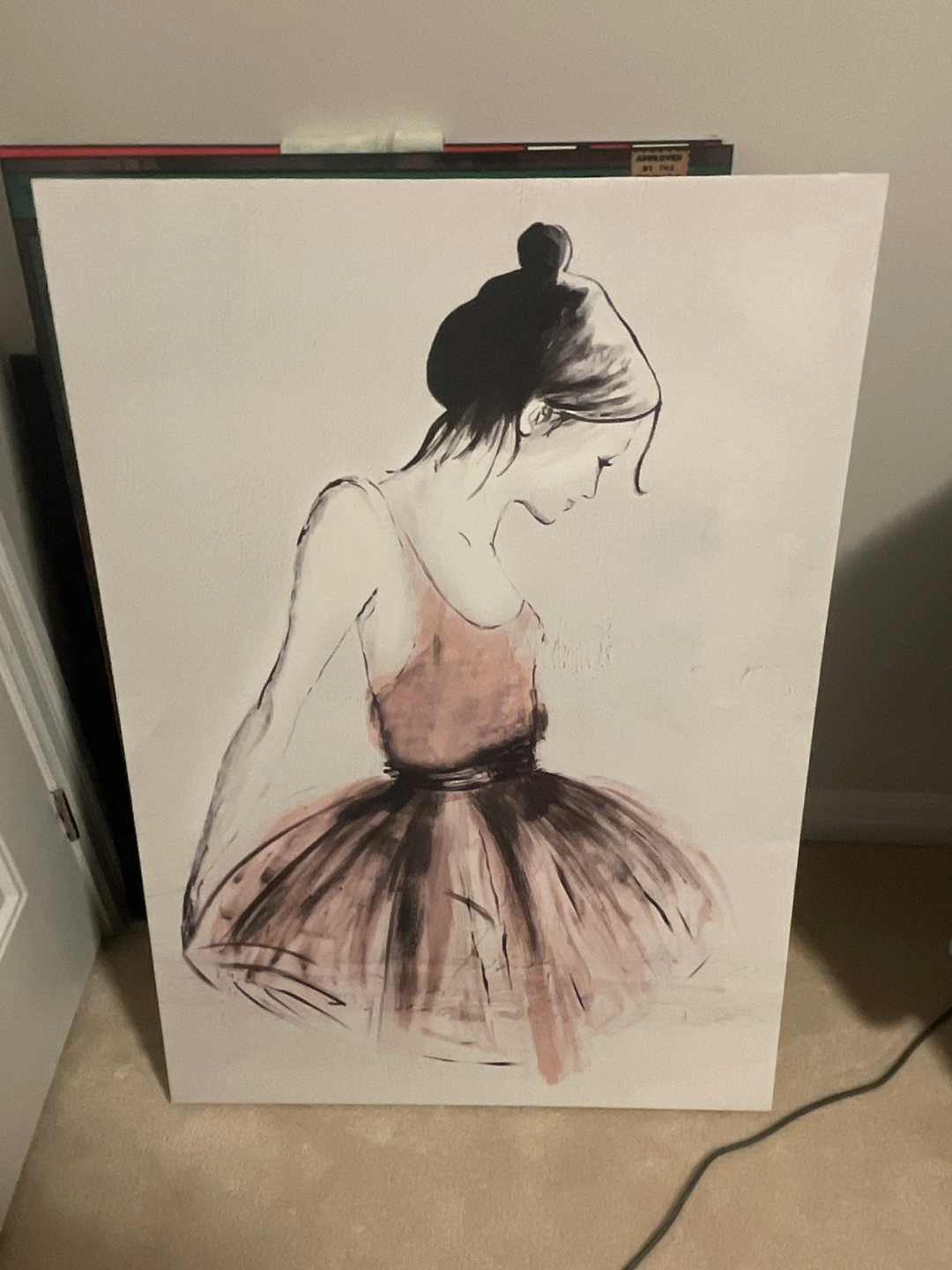 Beautiful ballerina painting on canvas. Large format, neutral colours. Perfect for a bedroom or dance studio.