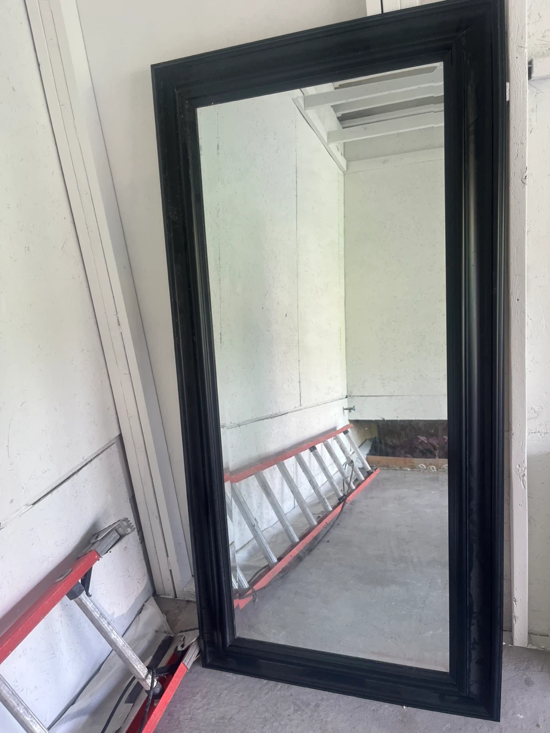 Selling a large mirror with a black frame. It's in good condition and ready to brighten up your space. The frame adds a touch of elegance